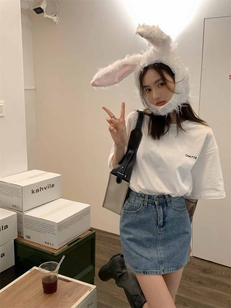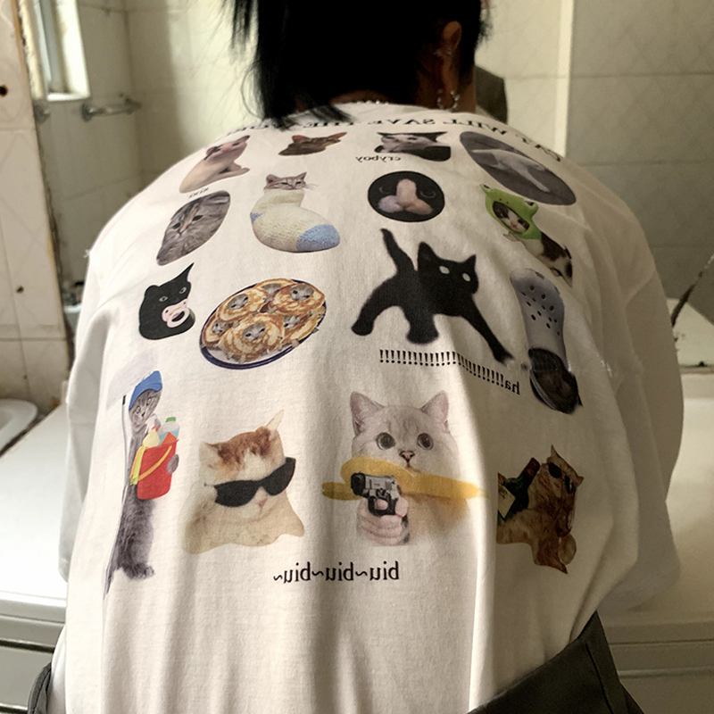 猫バックプリントTシャツ半袖トップスカ