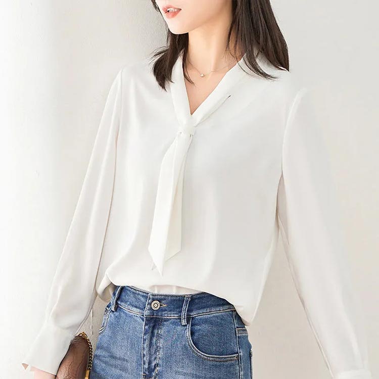 シアースリーブ ドッキングシャツ ボウタイシャツブラウス