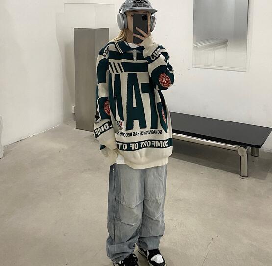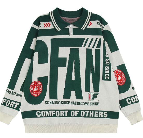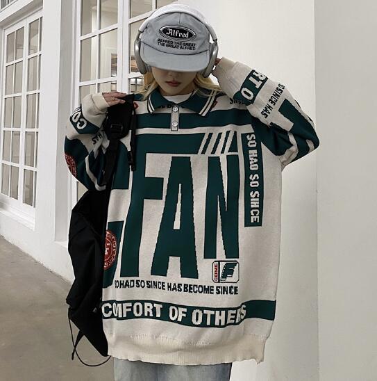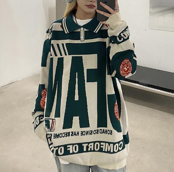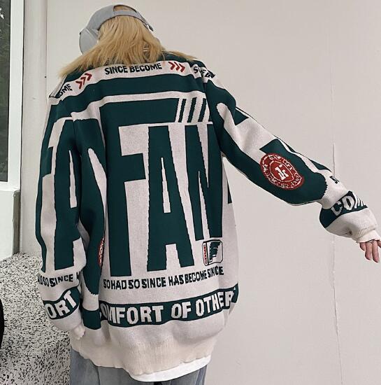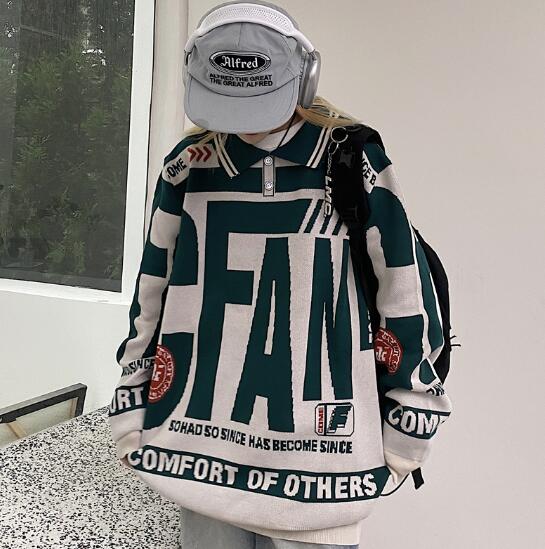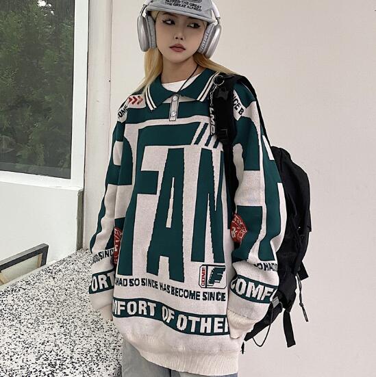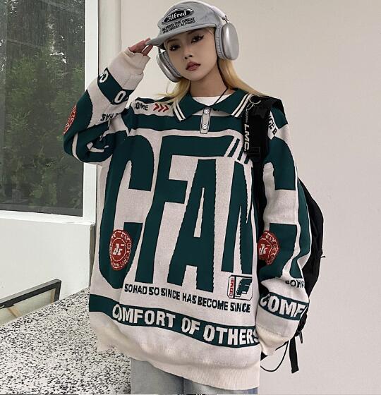 全2色 ニット セーター 長袖 切り替え バイカラー 配色 体型カバー カットソー カレッジ風 通学 原宿系ファッション 韓国風 ダンス衣装 POP カワ 個性 奇抜 かわいい 青文字系 トップス レ