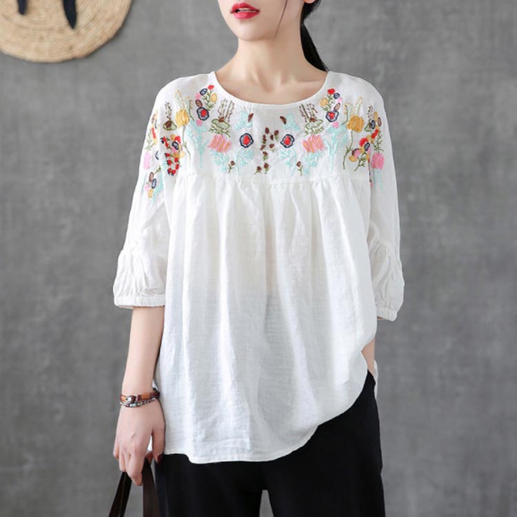 刺繍ブラウス エスニック風 バー tシ