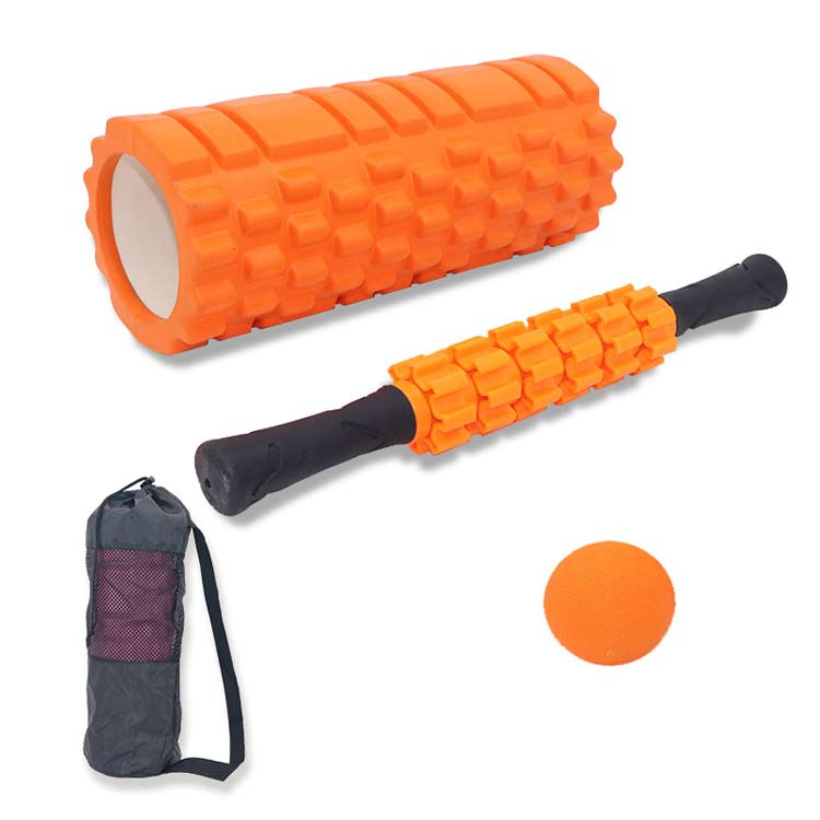4点セット 収納袋付き マッサージ トレーニング フォームローラー 筋膜リリース ヨガポール グリッドフォームローラー ストレッチ スティック