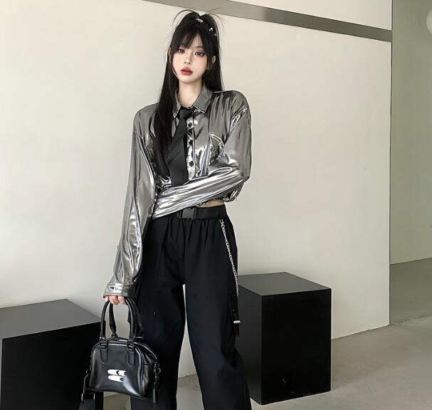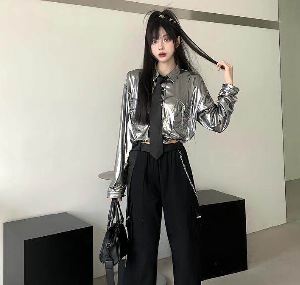 シアースリーブ ドッキングシャツ ボウタイシャツブラウス