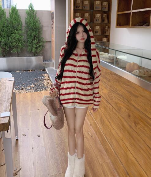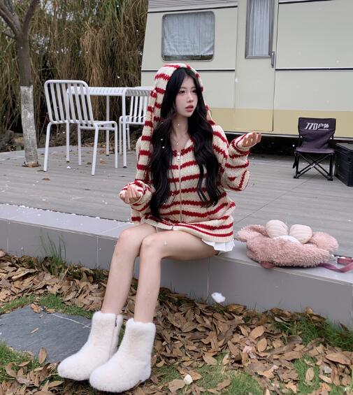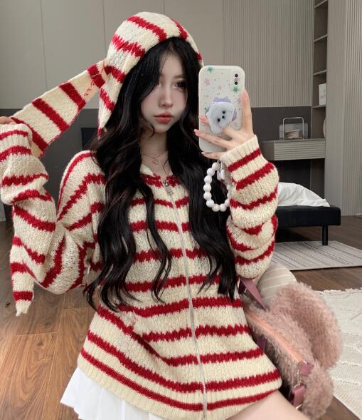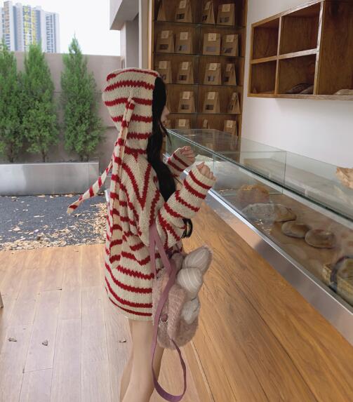 うさ耳付きフードパーカーニットトップス
