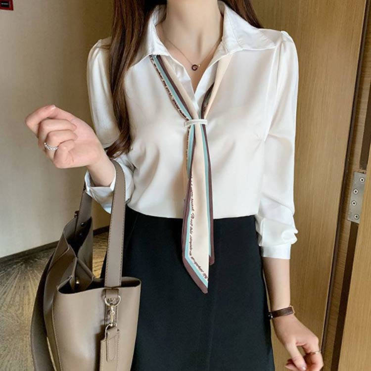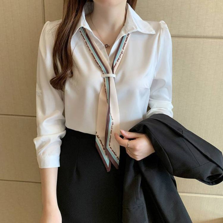 シアースリーブ ドッキングシャツ ボウタイシャツブラウス