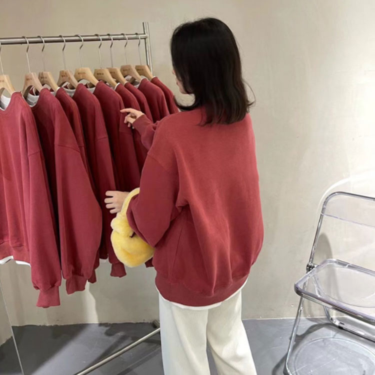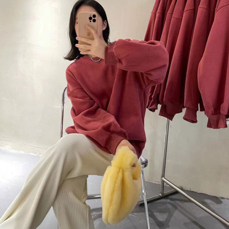丸ネック無地大きめ 長袖トップス韓国ク