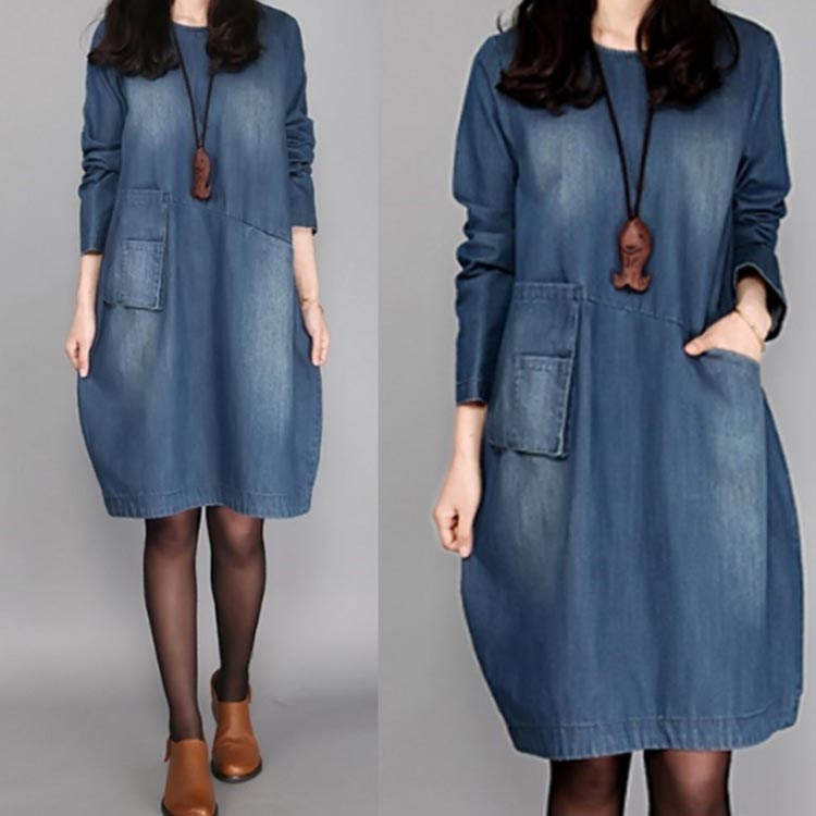 M-5XLサイズ デニムワンピース カ