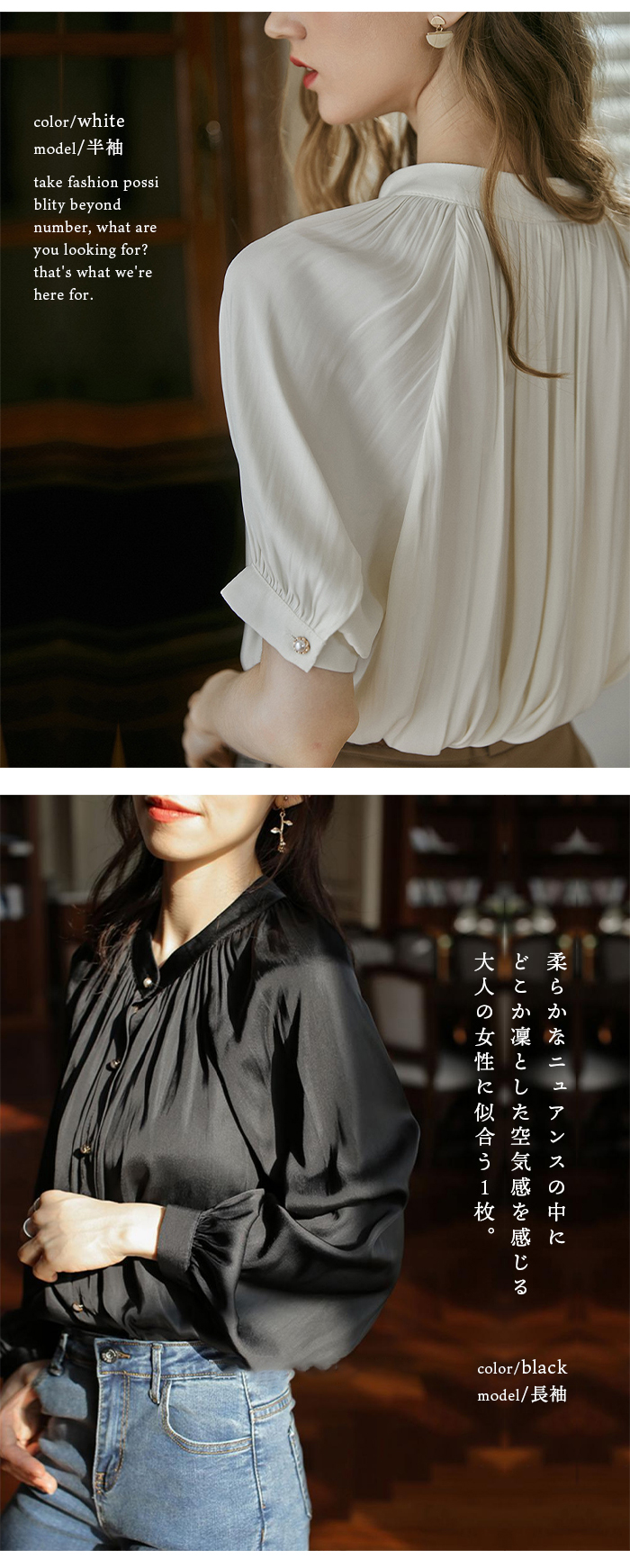 シアースリーブ ドッキングシャツ ボウタイシャツブラウス