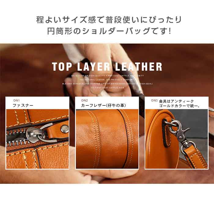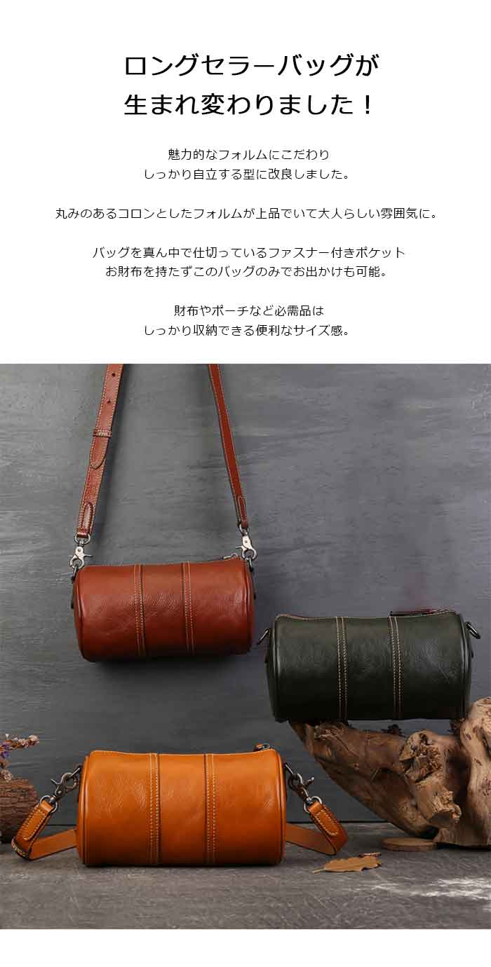 両サイドが丸形デザインのショルダーバッグ レバッグを真ん中で仕切っているファスナー付き 程よいサイズ感で普段使いにぴったり円形