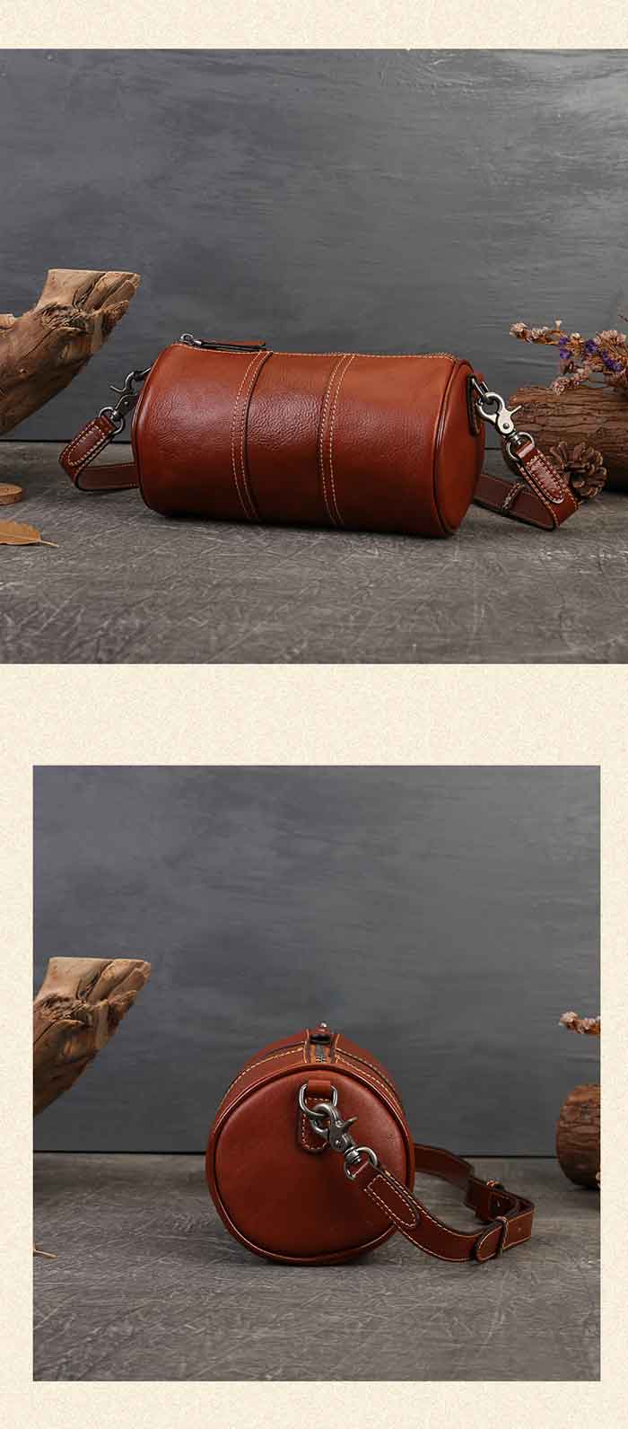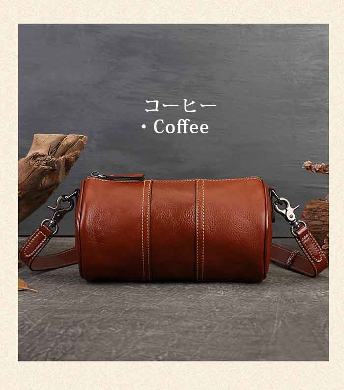 両サイドが丸形デザインのショルダーバッ