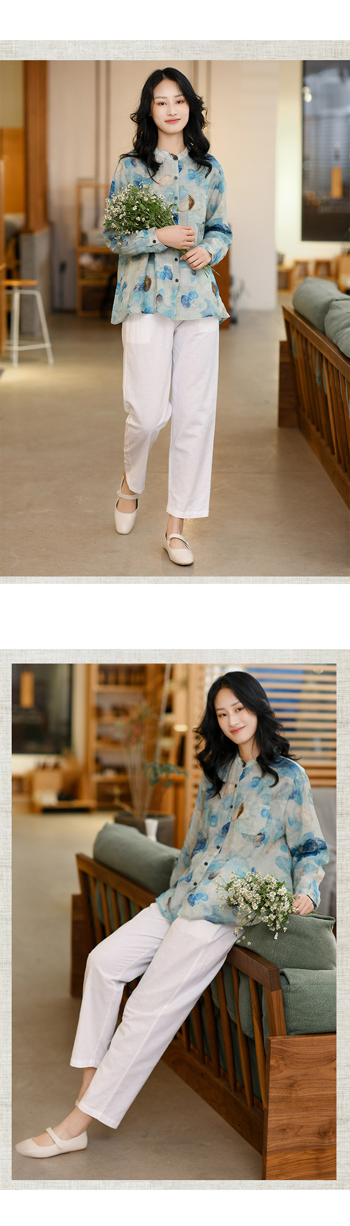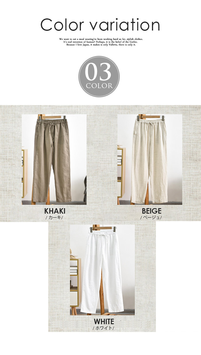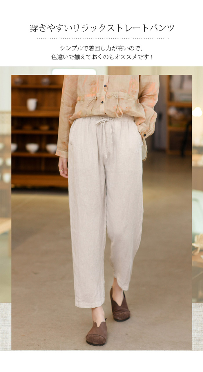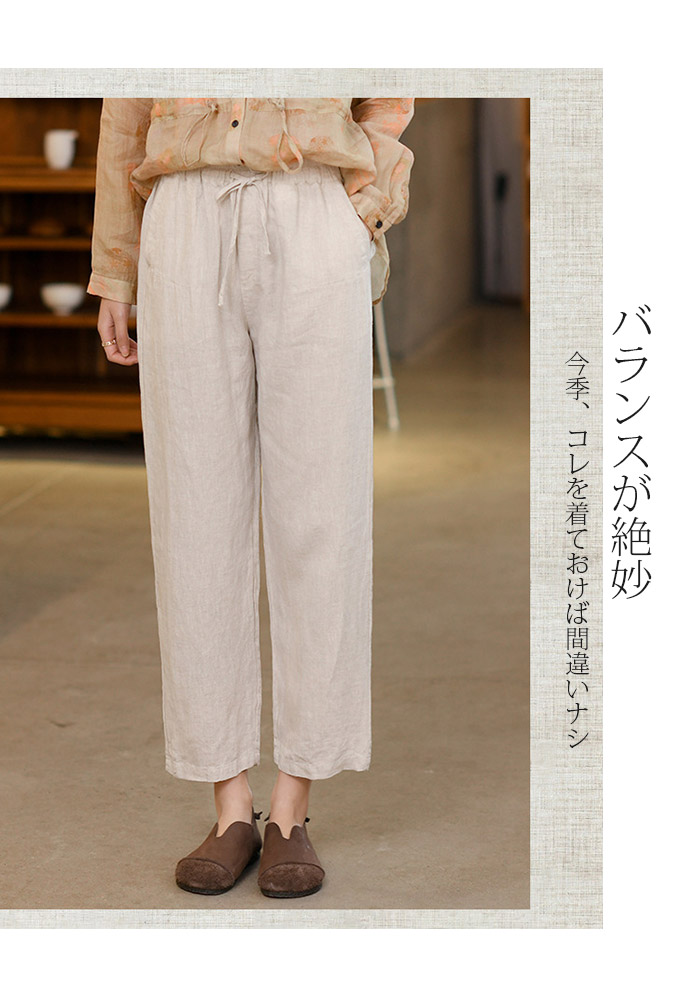 薄くて柔らかな麻混素材で穿き心地よい