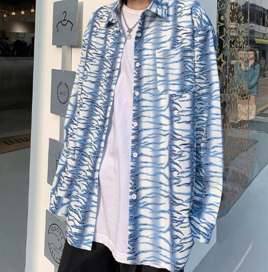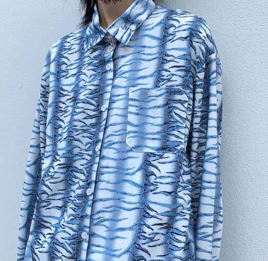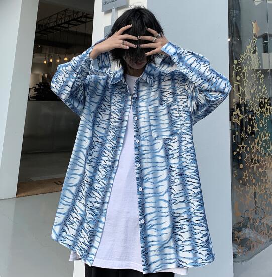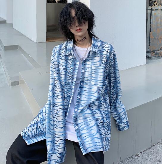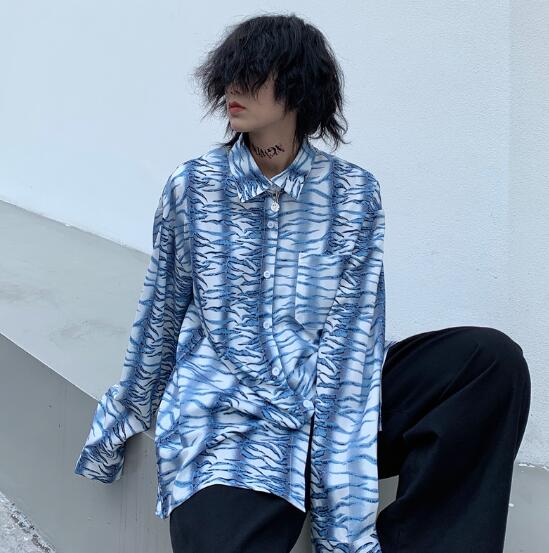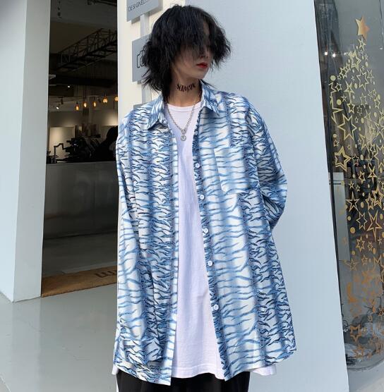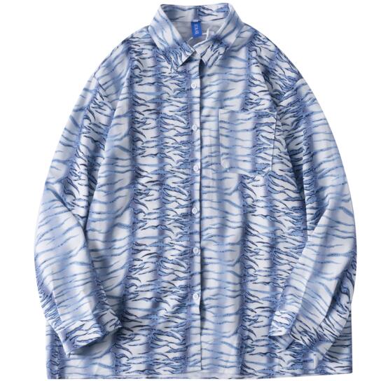 柄シャツ マーブル長袖 ビッグシルエッ