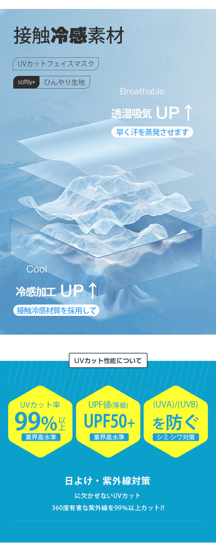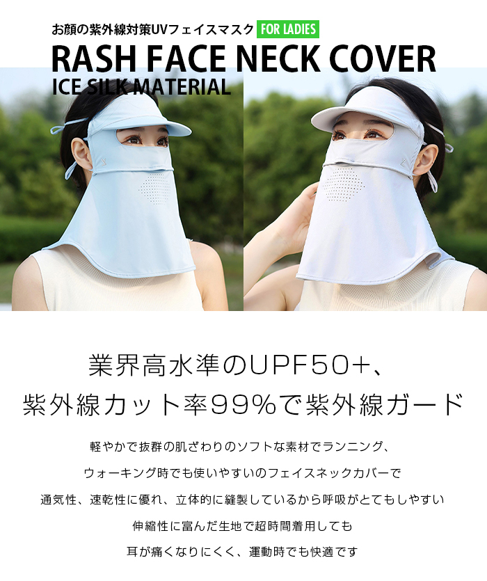 レディース フェイスマスク UVカット 洗える 冷感 吸汗速乾 メッシュ 顔 首 肩 防塵 紫外線対策 日焼け防止 メガネが曇らない 息苦しくない 装着便利