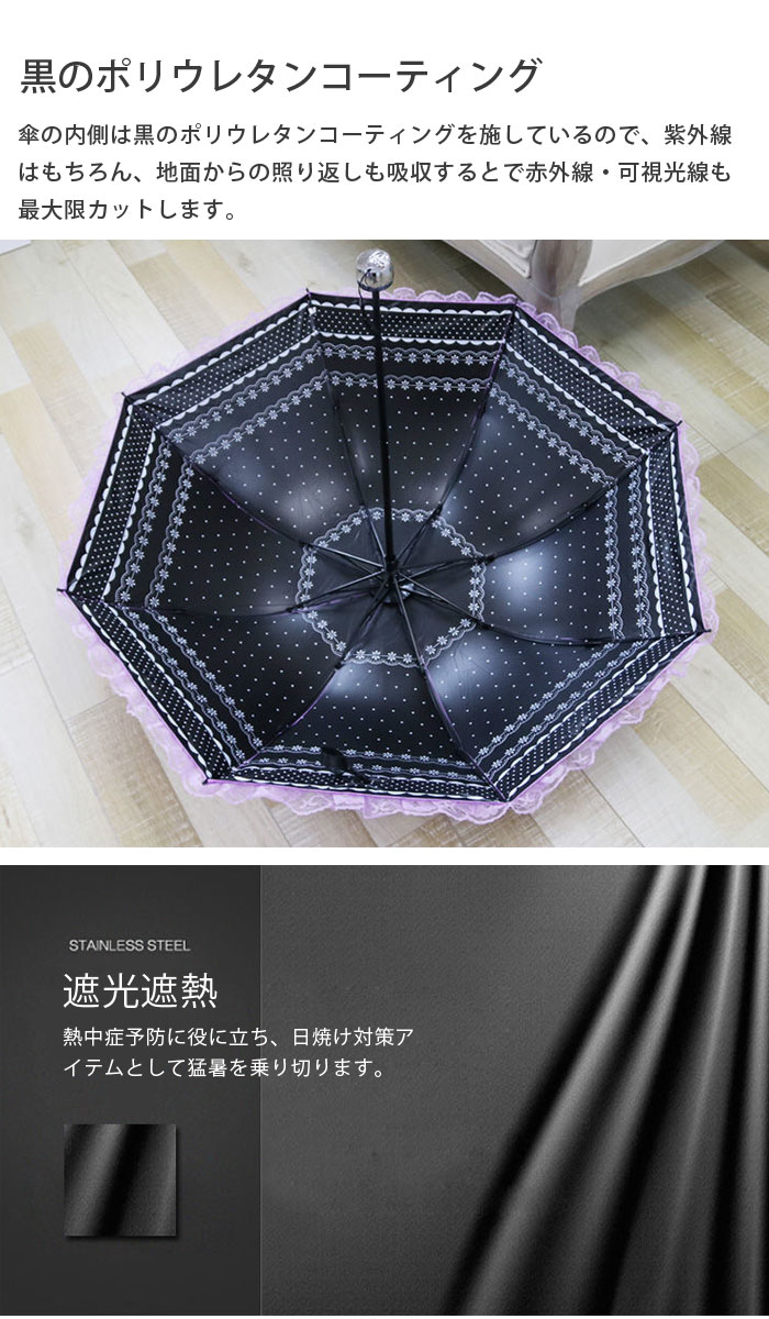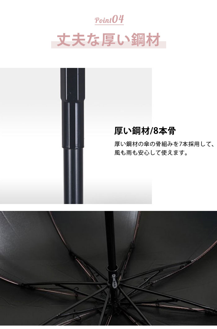 8本骨 深張り ドーム型傘 黒コーティ