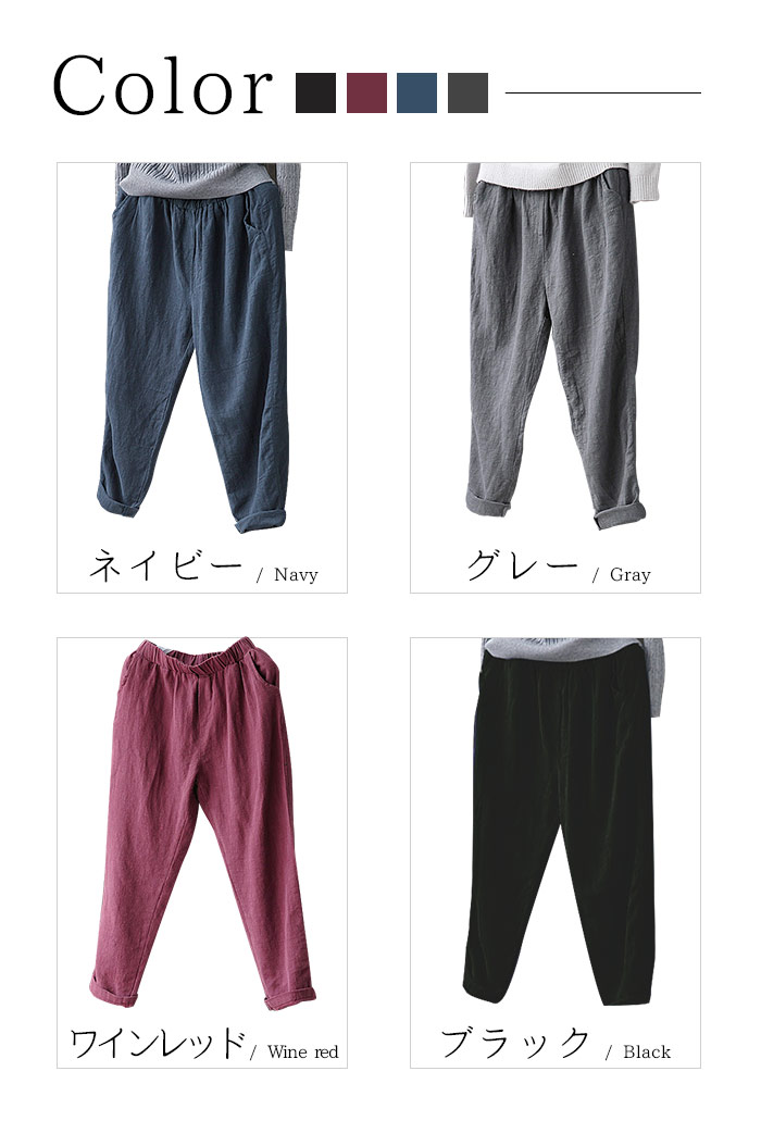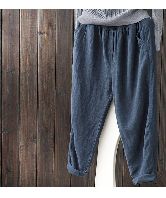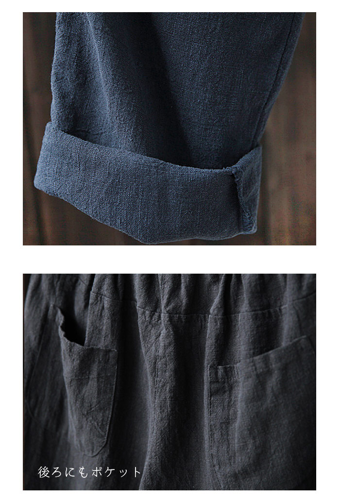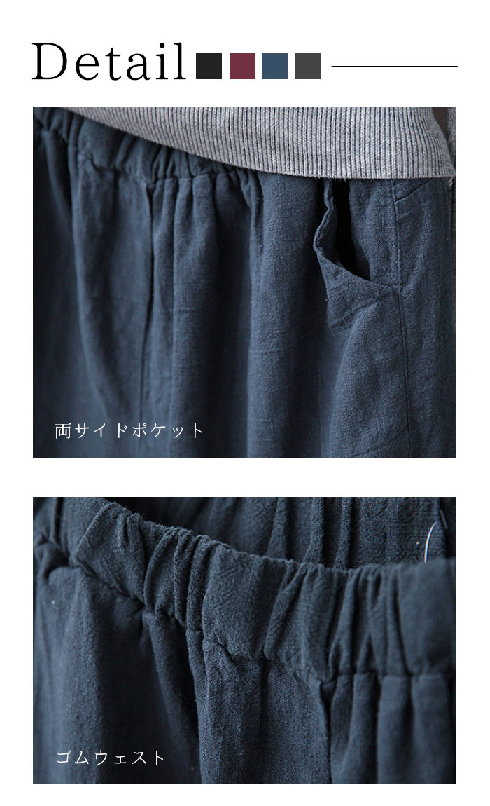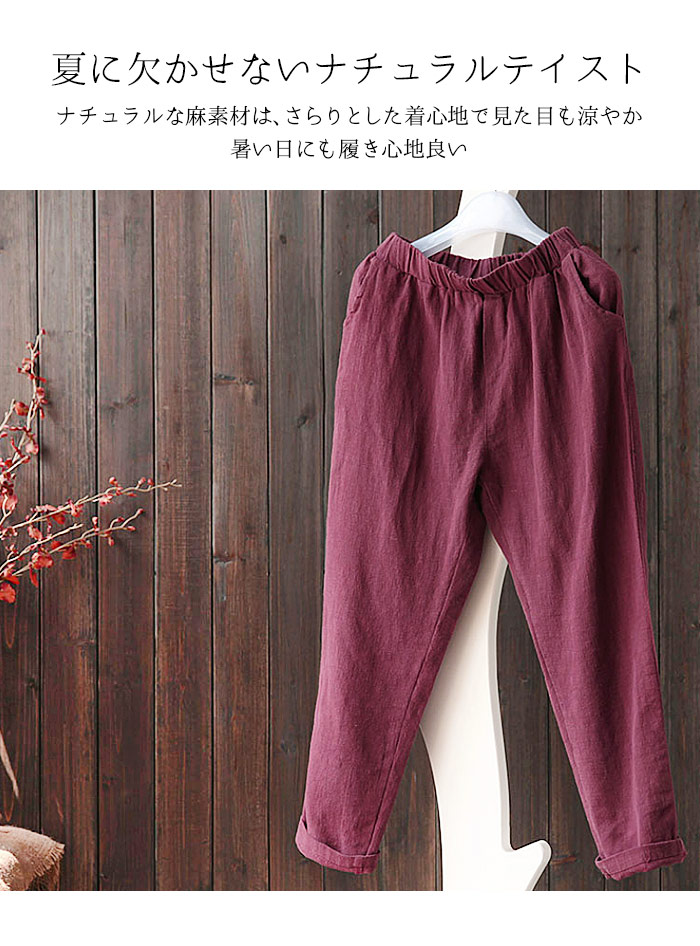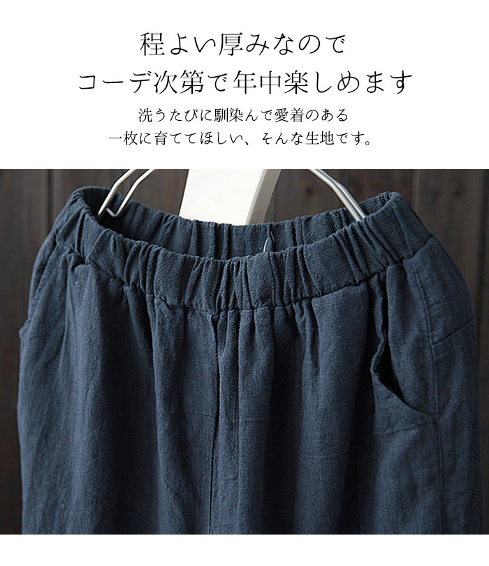 薄くて柔らかな麻混素材で穿き心地よい