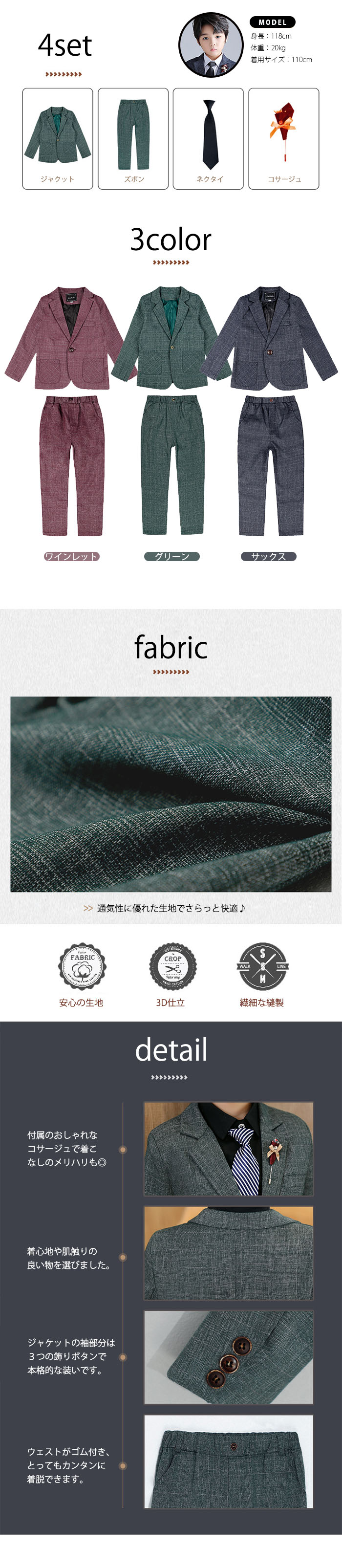 子供服 フォーマル スーツ 生地も柔ら
