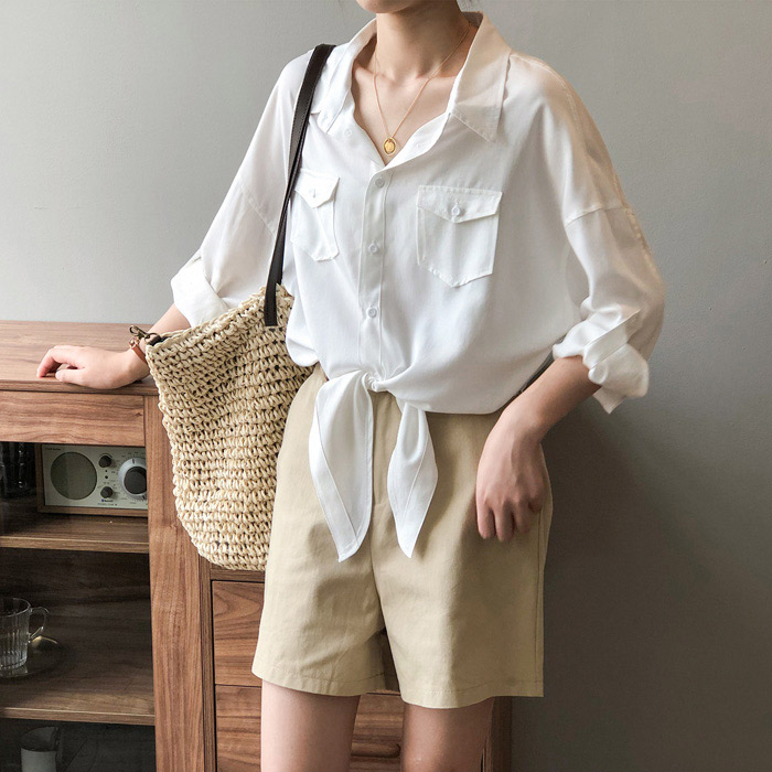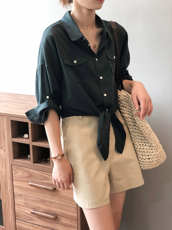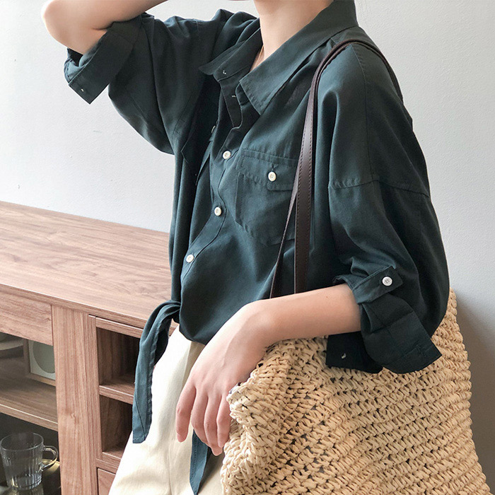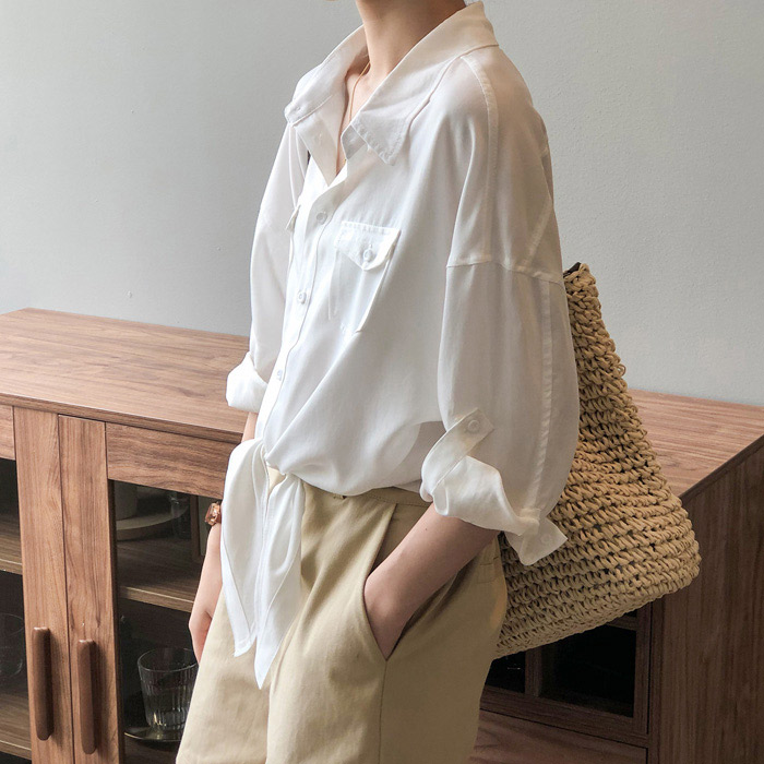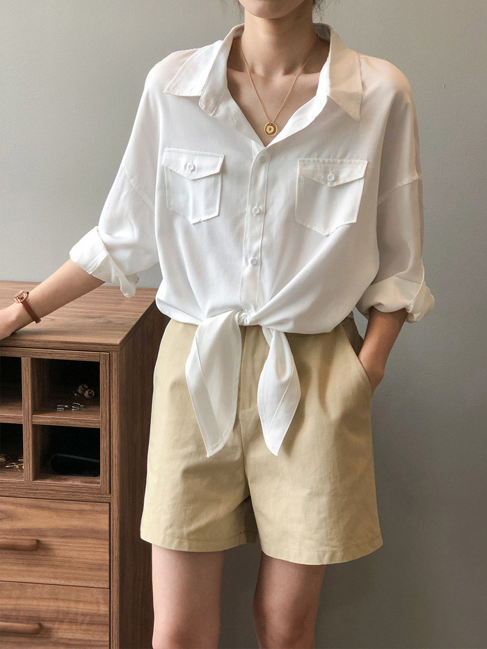 シアースリーブ ドッキングシャツ ボウタイシャツブラウス