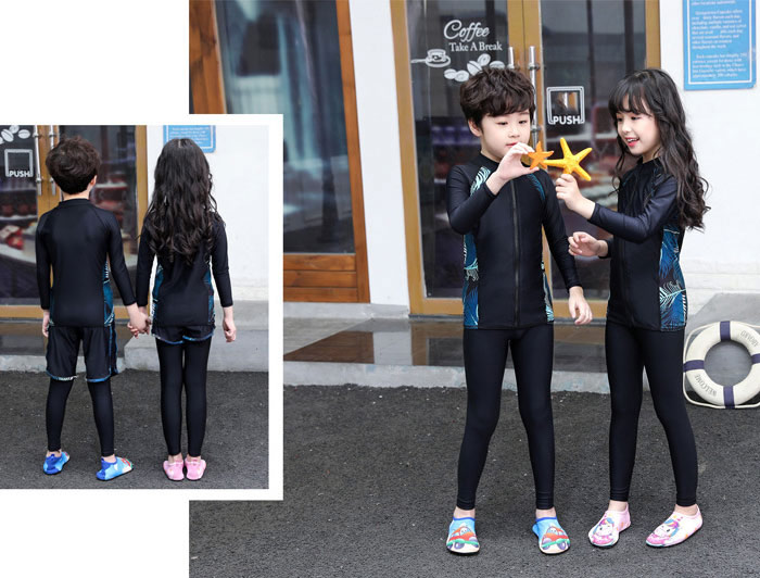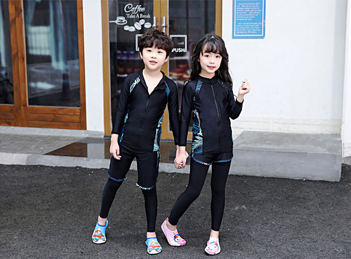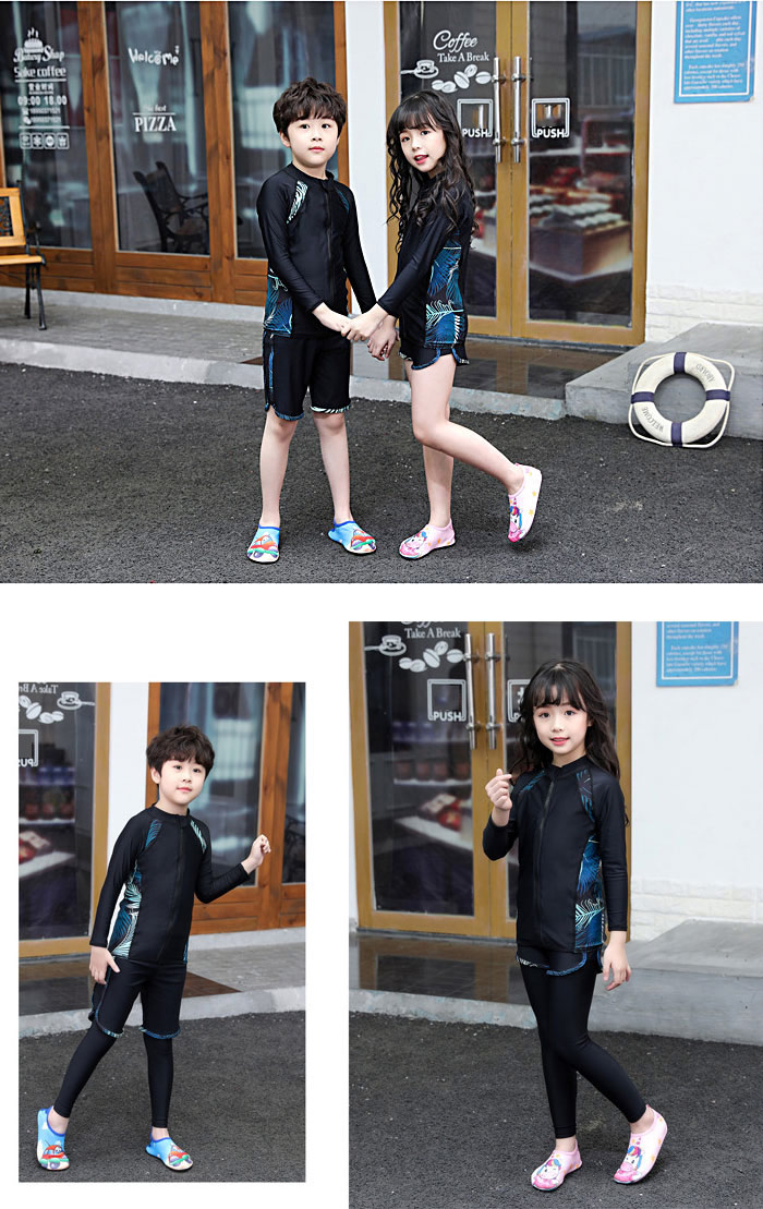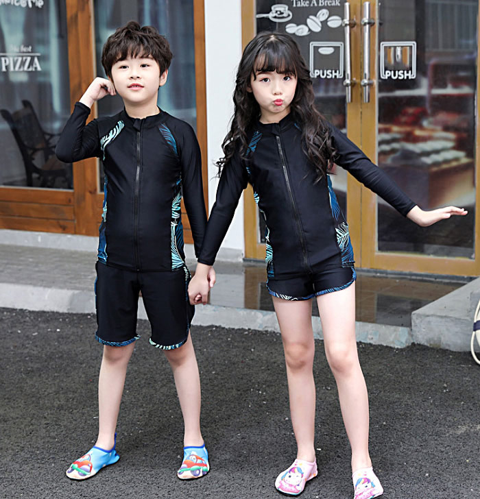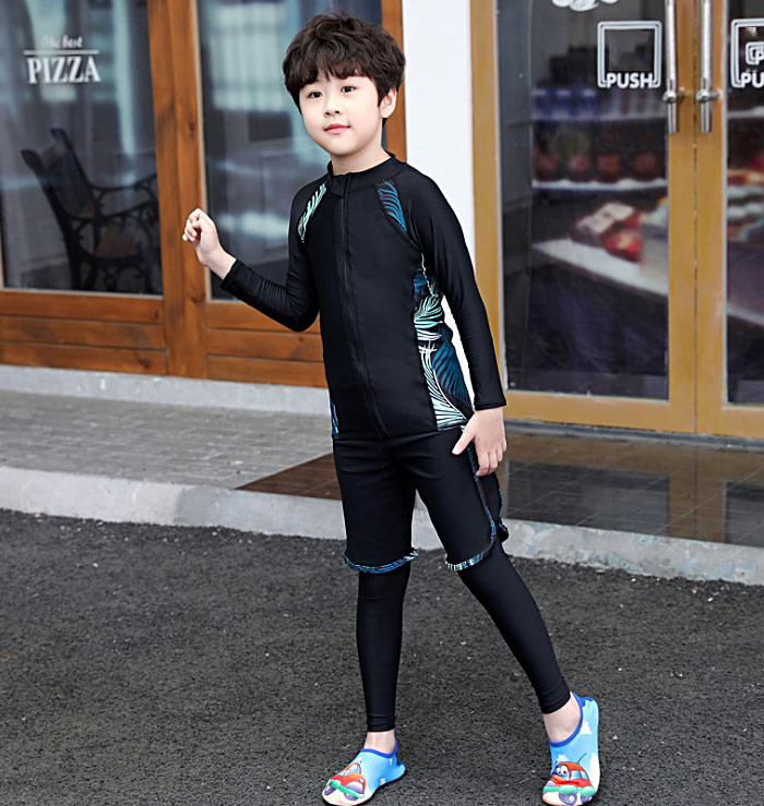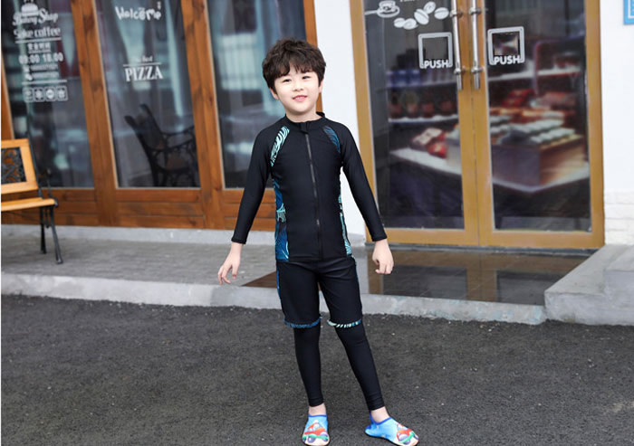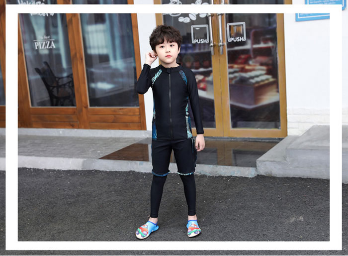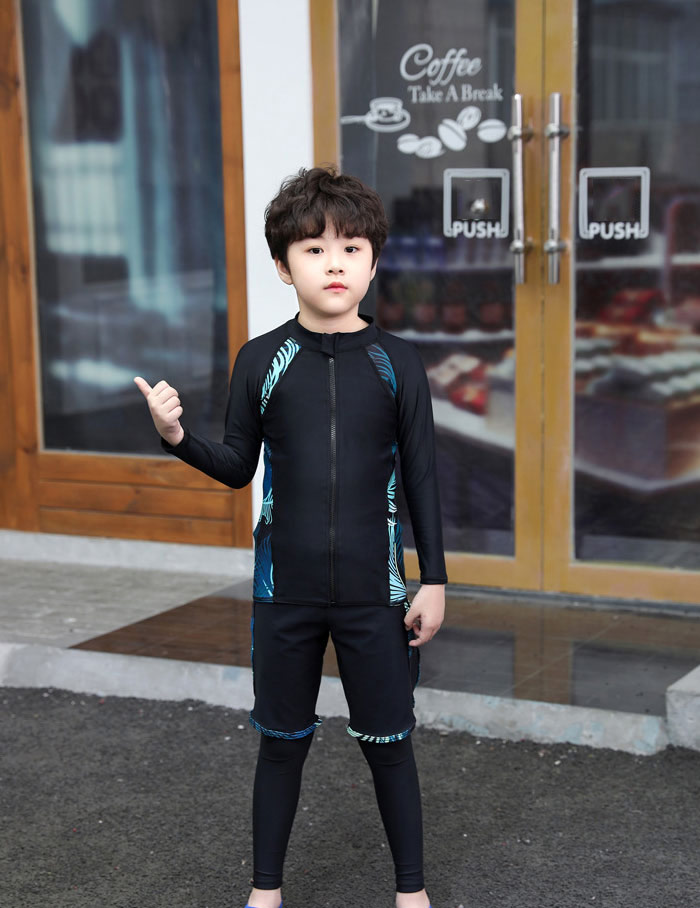 ファスナー付き 脱着簡単 子供 水着 男の子 キッズ 水着 男の子 長袖保護するセパレート水着 ビーチの日焼けも心配しない