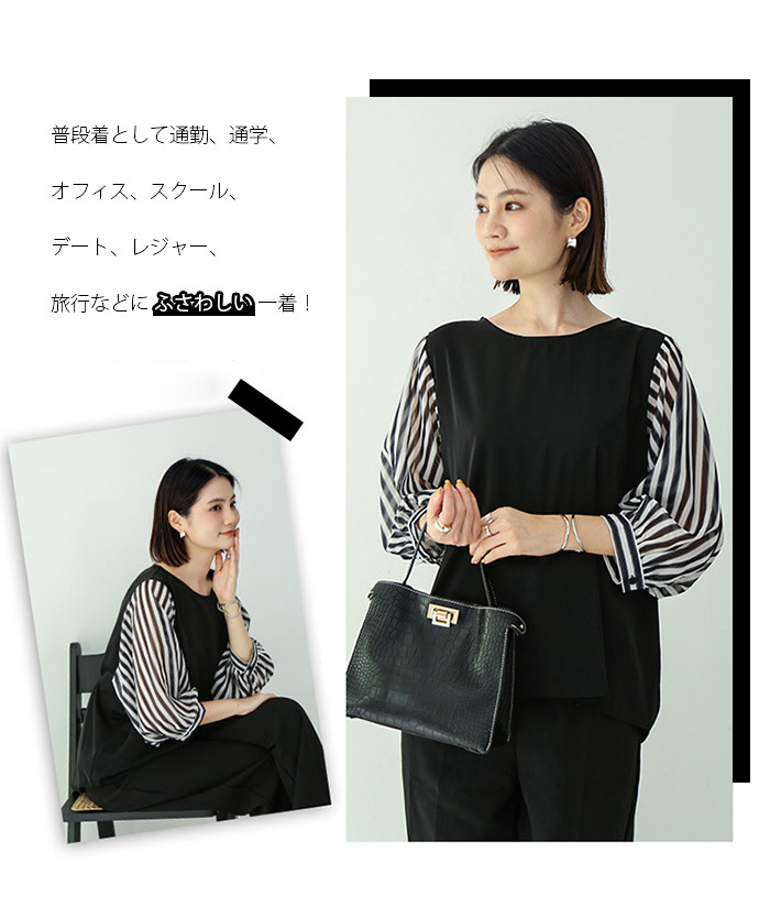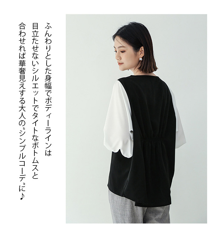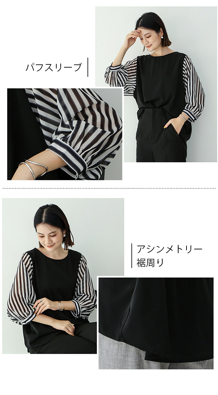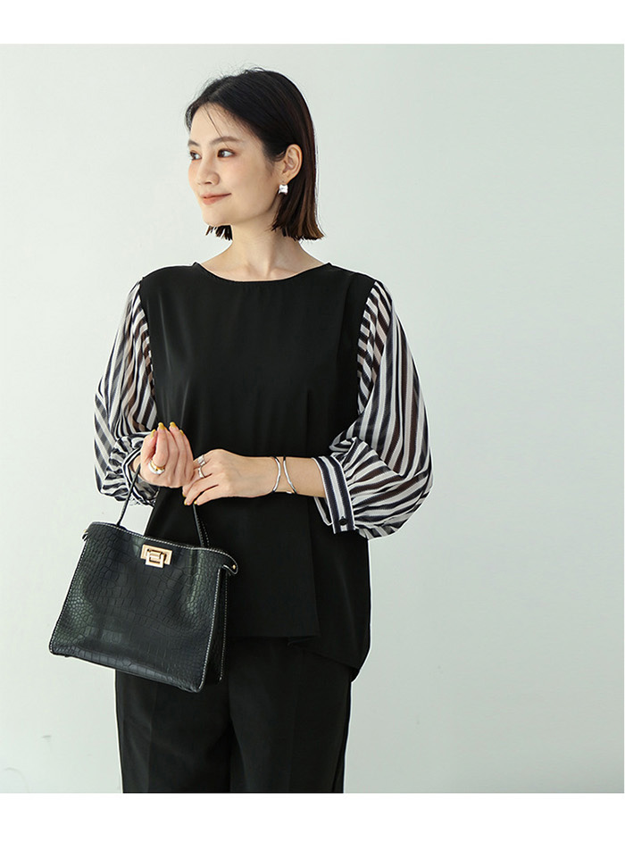シアースリーブ ドッキングシャツ ボウタイシャツブラウス