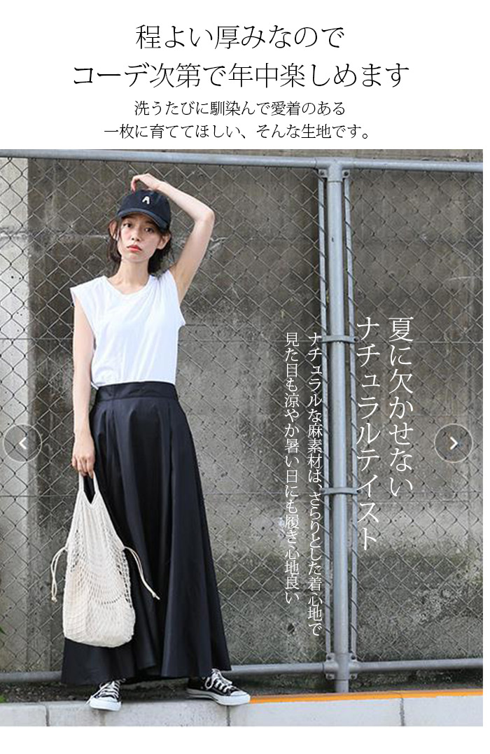 ミモレ丈のリネンスカート 暑い夏も涼し