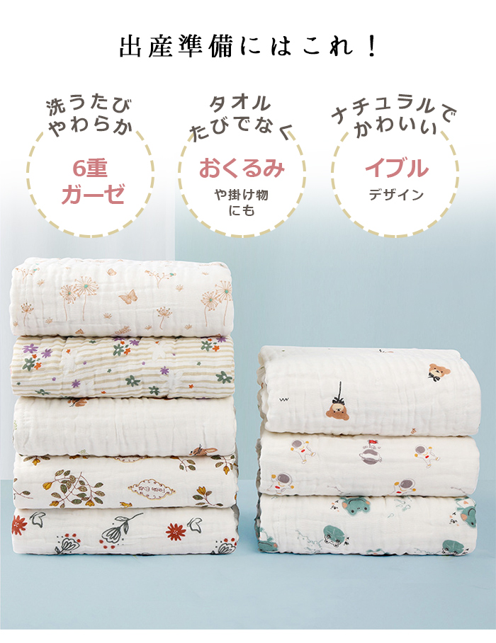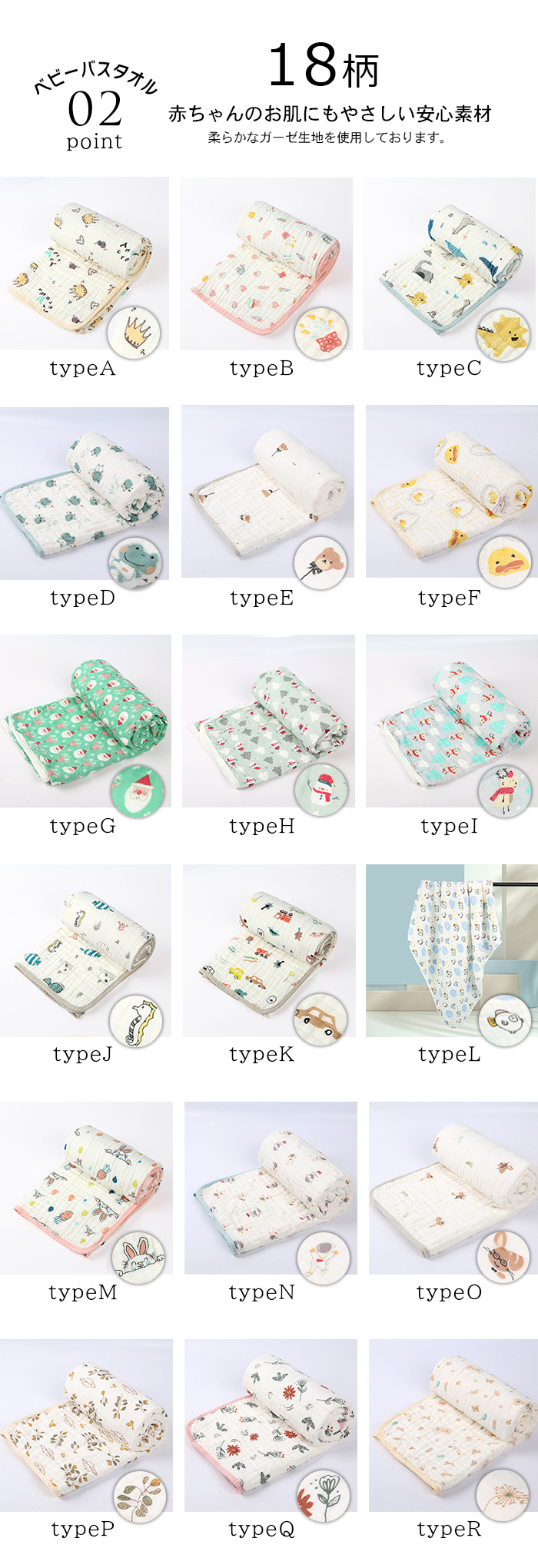 赤ちゃん ベビーバスタオル 吸水速乾 18 タイプ ご自由に選択できる おしゃれ 110cm×110cm 正方形 フリーサイズ おくるみ シーツ ガーゼセット などなど