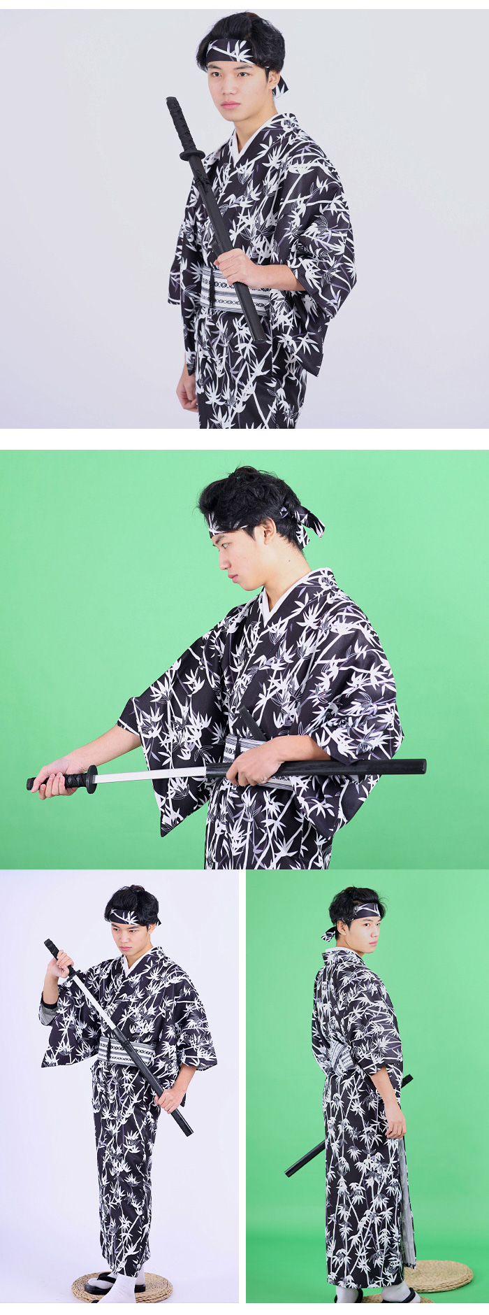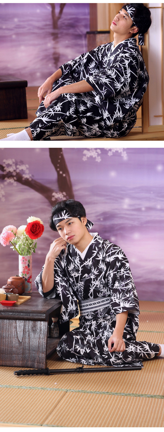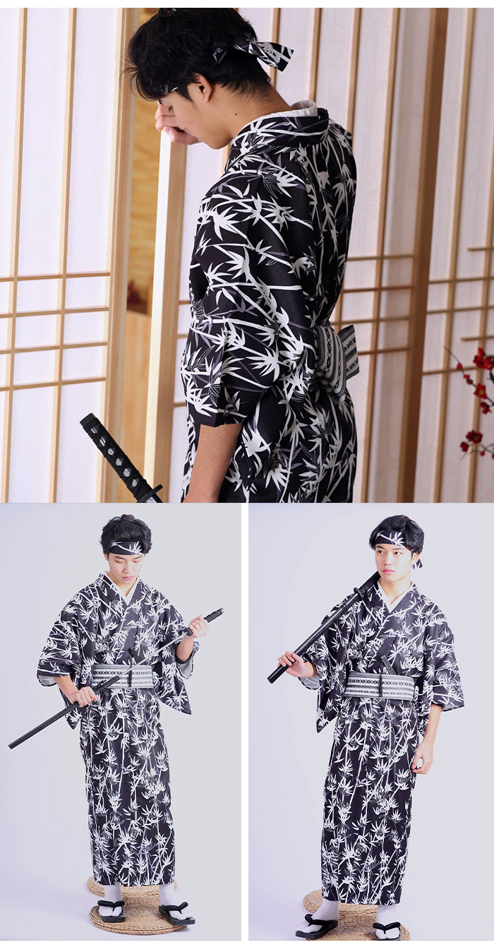 浴衣 メンズ 3点セット 花火大会 お祭りに大活躍 上品な質感 男性用 浴衣 竹 柄 部屋着 ポリエステル 伝統 竹 柄 前開きが脱着簡単 シンプル
