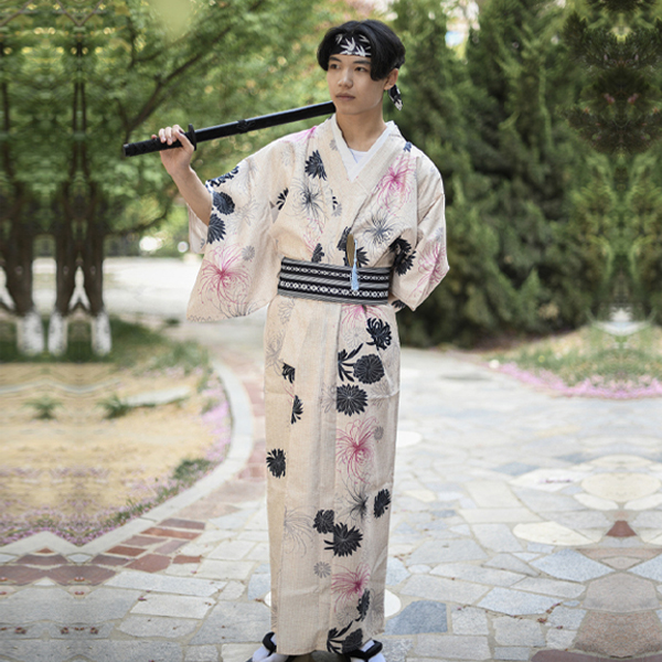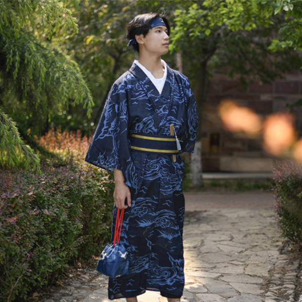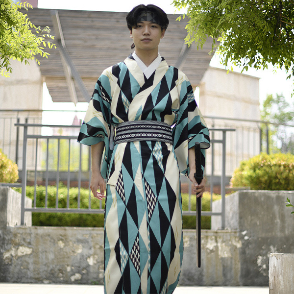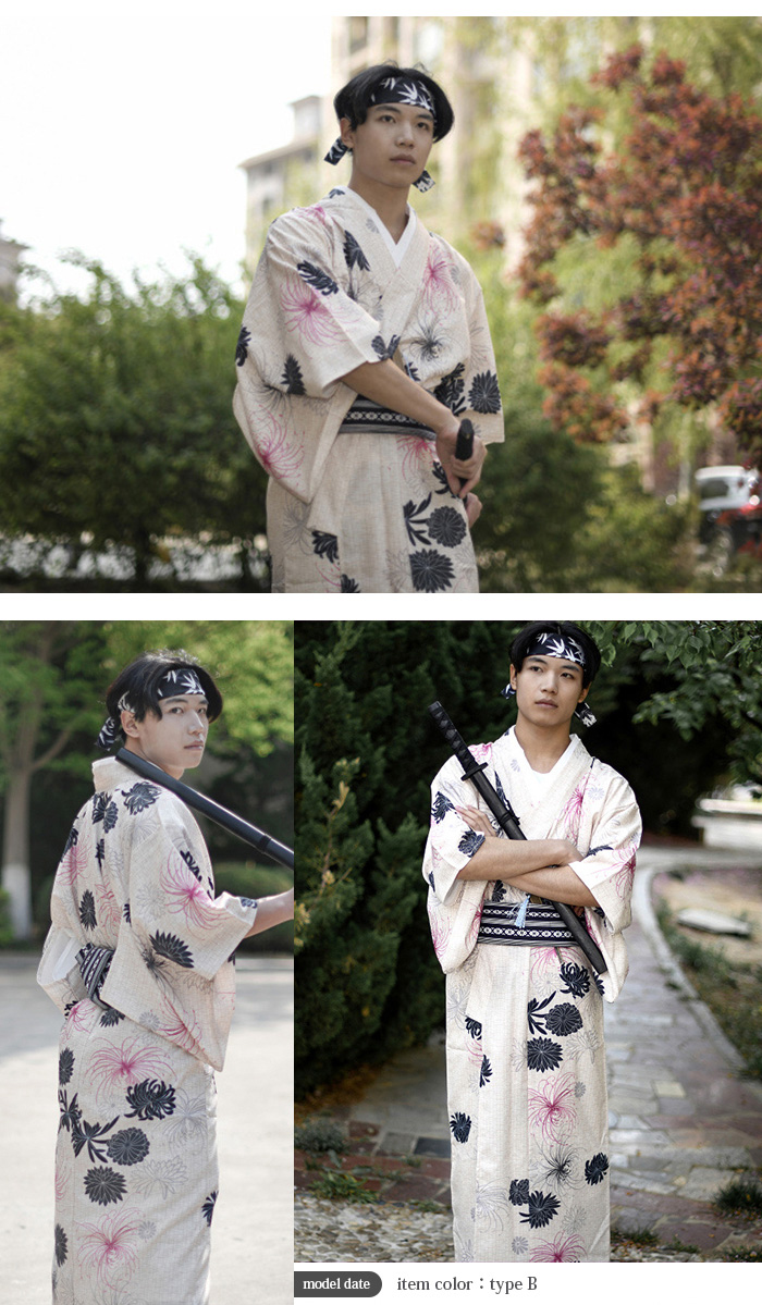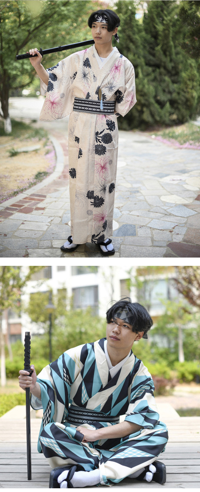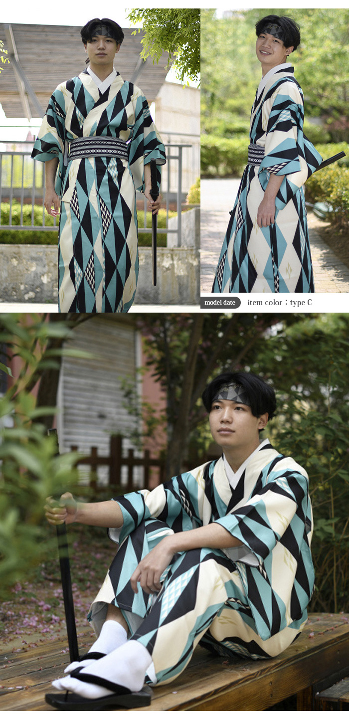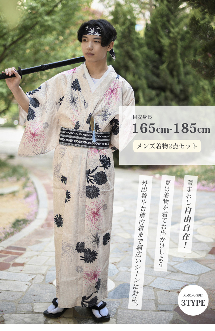浴衣 メンズ 2点セット 男性 和服 ゆかた 帯 着物 フリーサイズ 花火大会 お祭りに大活躍 上品な質感 男性用 浴衣 部屋着 ポリエステル 伝統 柄 前開きが脱着簡単 シンプル