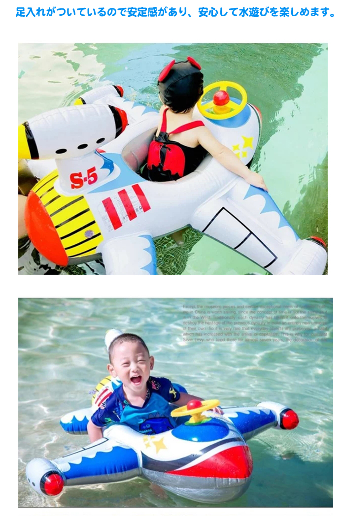 飛行機形 ハンドル付き 足入れ浮き輪
