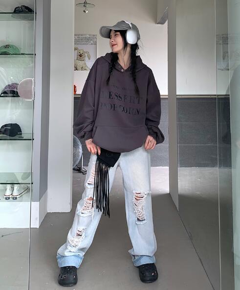 ロゴパーカーフーディー長袖トップスカッ