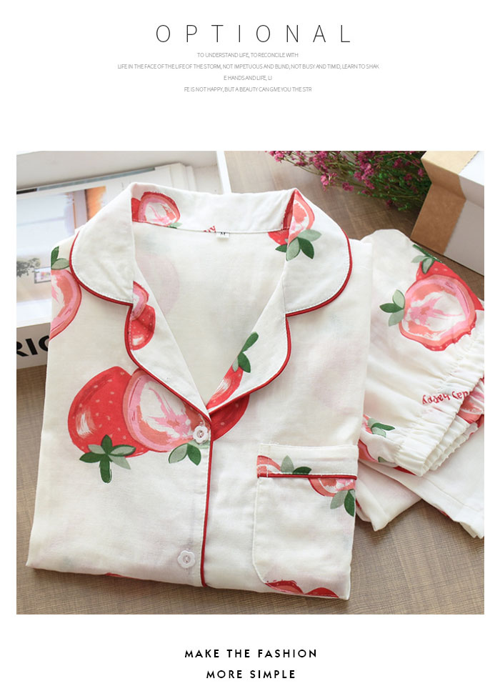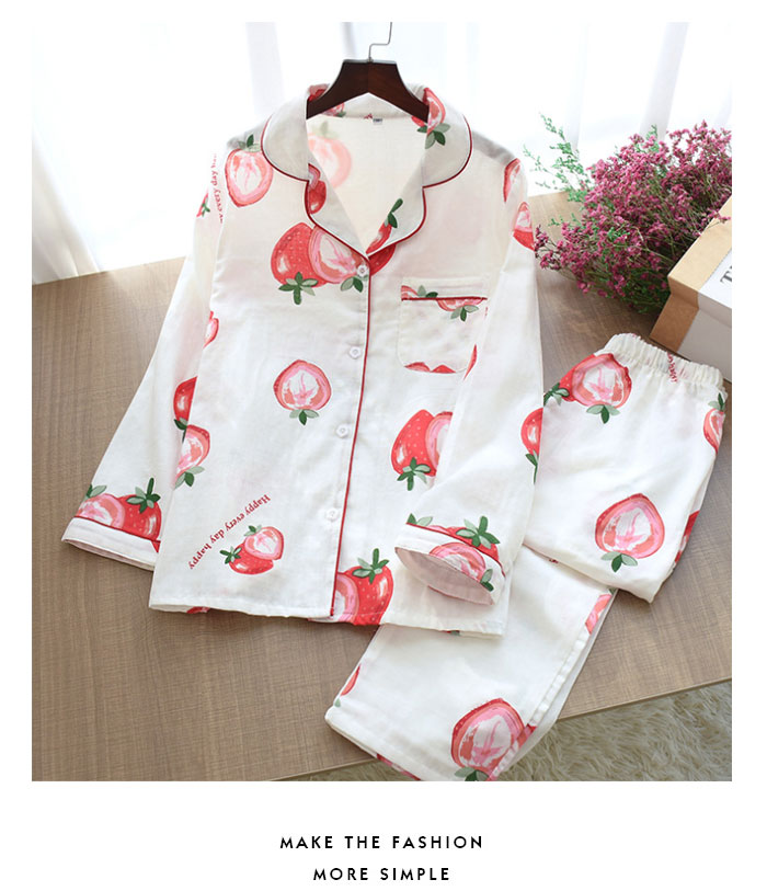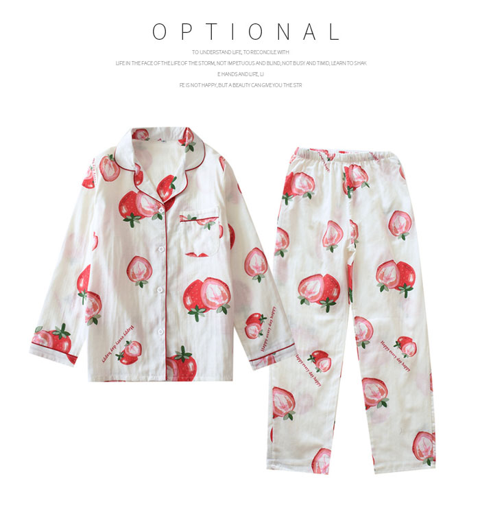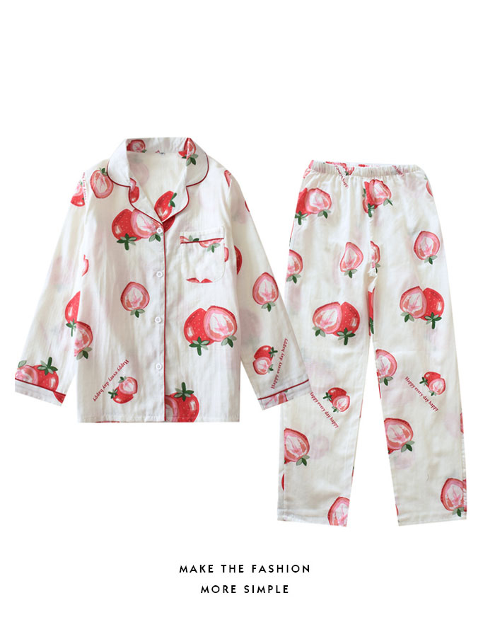レディース セットアップ イチゴ柄 長袖 2枚セット 春 夏 2点セット コットン 綿 大人 プレゼント