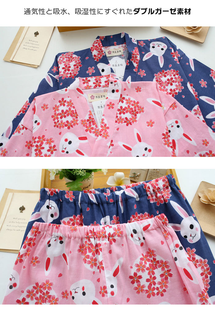和風前開きパジャマ上下セパレートが脱着簡単 綿素材採用して通気性良く涼しい、素敵な色とデザインがふわふわ可愛くて清新感満載