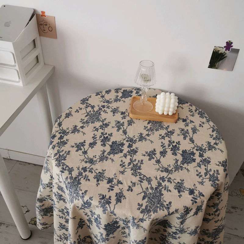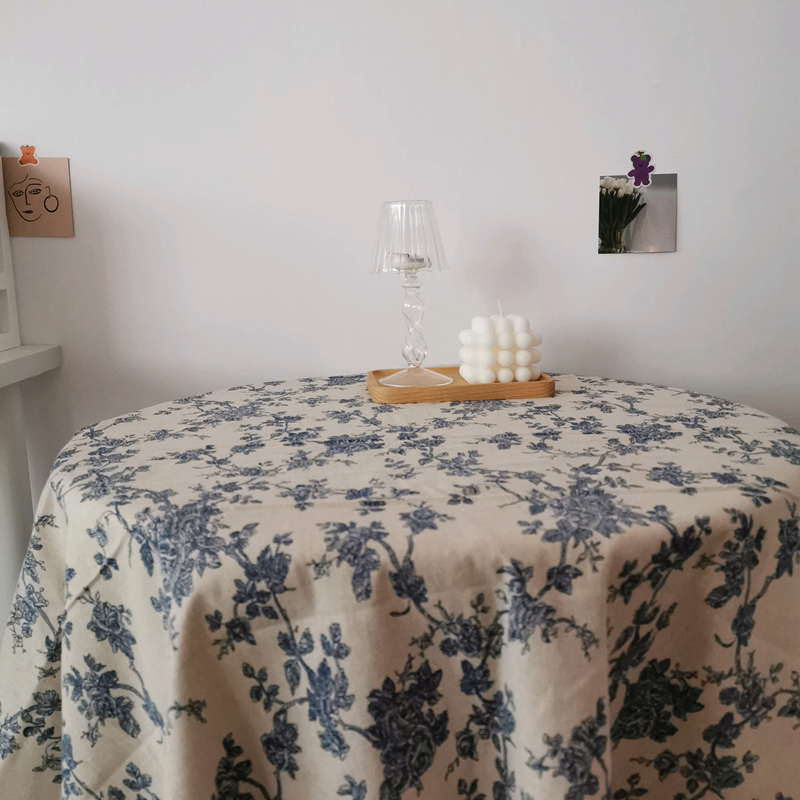 テーブルクロス花柄北欧韓国おしゃれ雑貨アンティーク布ブルー青ベージュ可愛いピクニックシートカフェマット四角長方形100cm×150cmレトロフラワーヴィンテージ風背景インスタ映え撮影シート