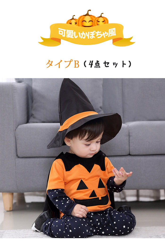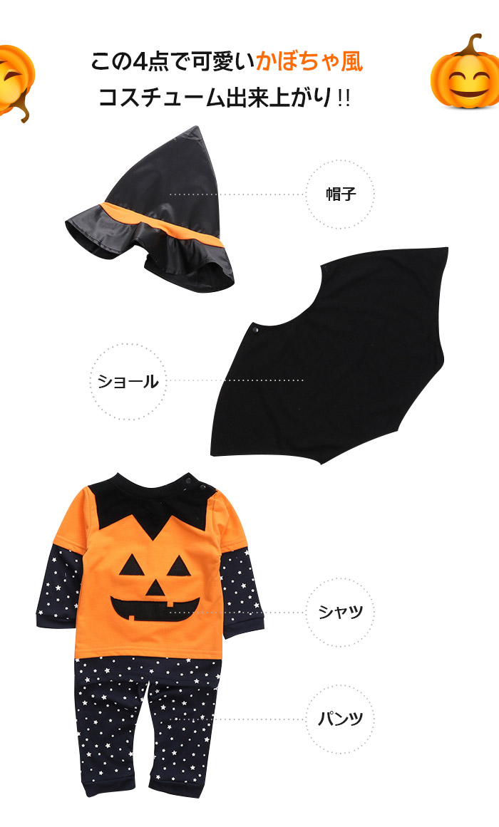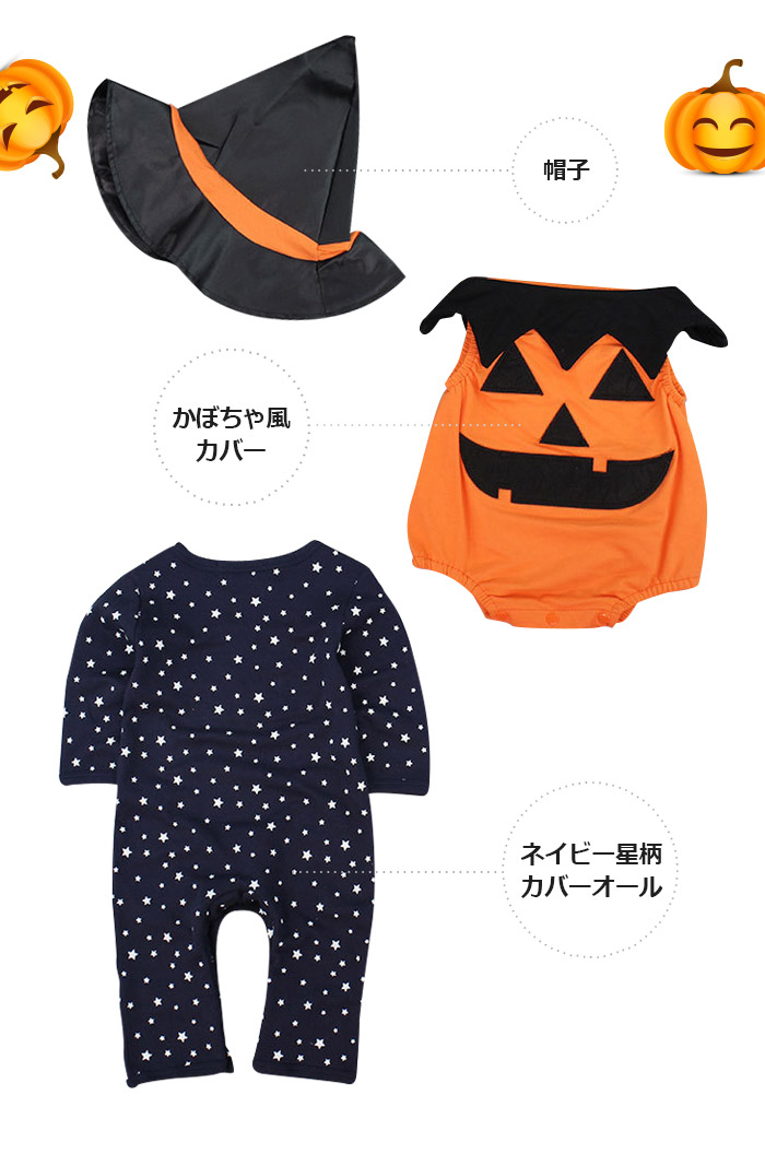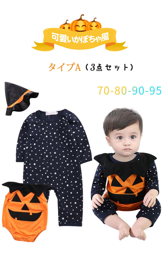 ロンパース コスチューム コウモリ パンプキン カボチャ ベビー服 カバーオール 男の子 女の子 長袖 キッズ 子供 出産祝い 誕生日 プレゼント ギフ トジャンプスーツ