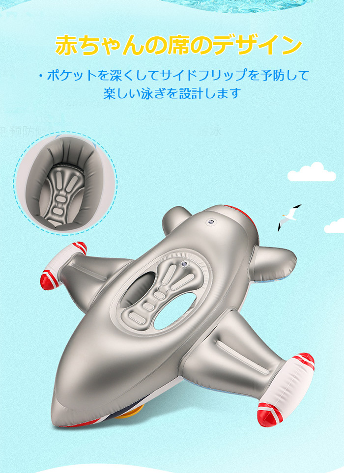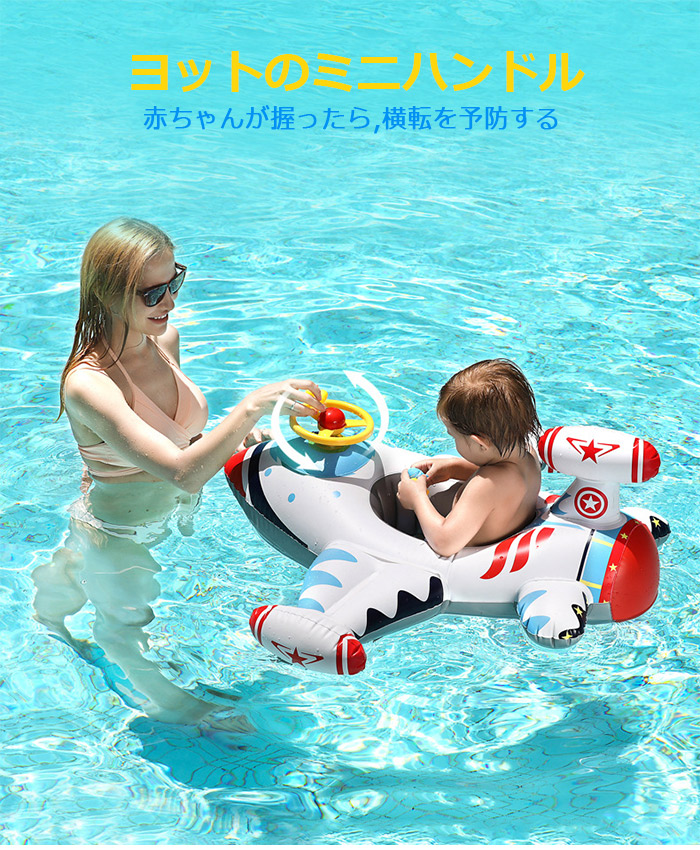 便利に携帯 赤ちゃんうきわ 子供にさらに安全 飛行機が浮き輪になる ハンドル付き 足入れ浮き輪 厚目PVCを採用して安全性更にアップ