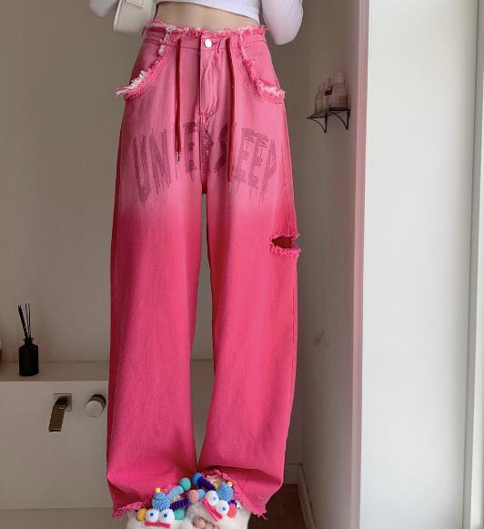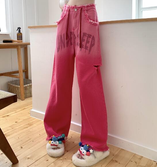 ♪S~XL展開♪ピンクフリンジデニムズ