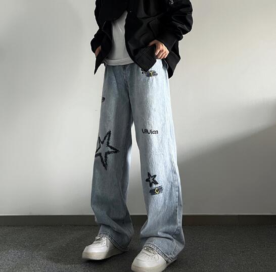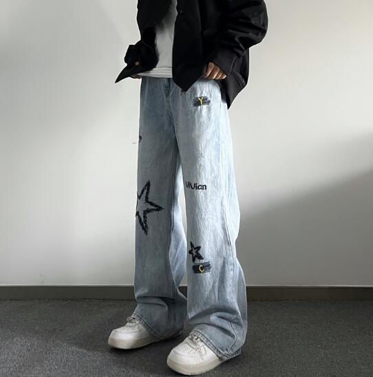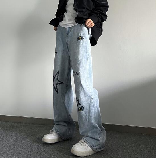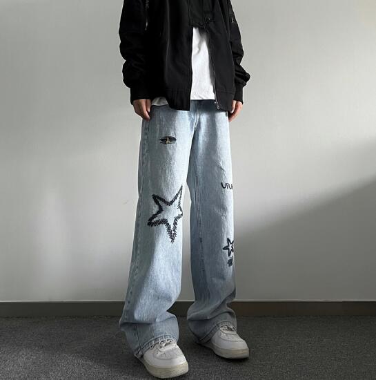 ♪M~2XL展開♪星柄刺繍デニムズボン