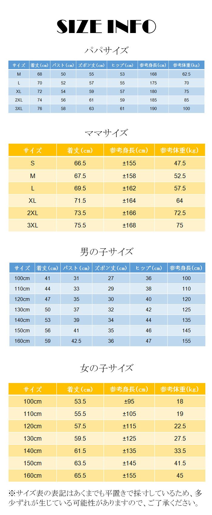 サイズ: パパM パパL パパXL パパ2XL パパ3XL ママS ママM ママL ママXL ママ2XL ママ3XL