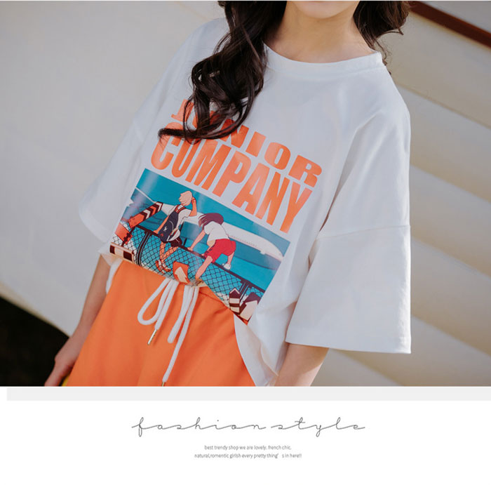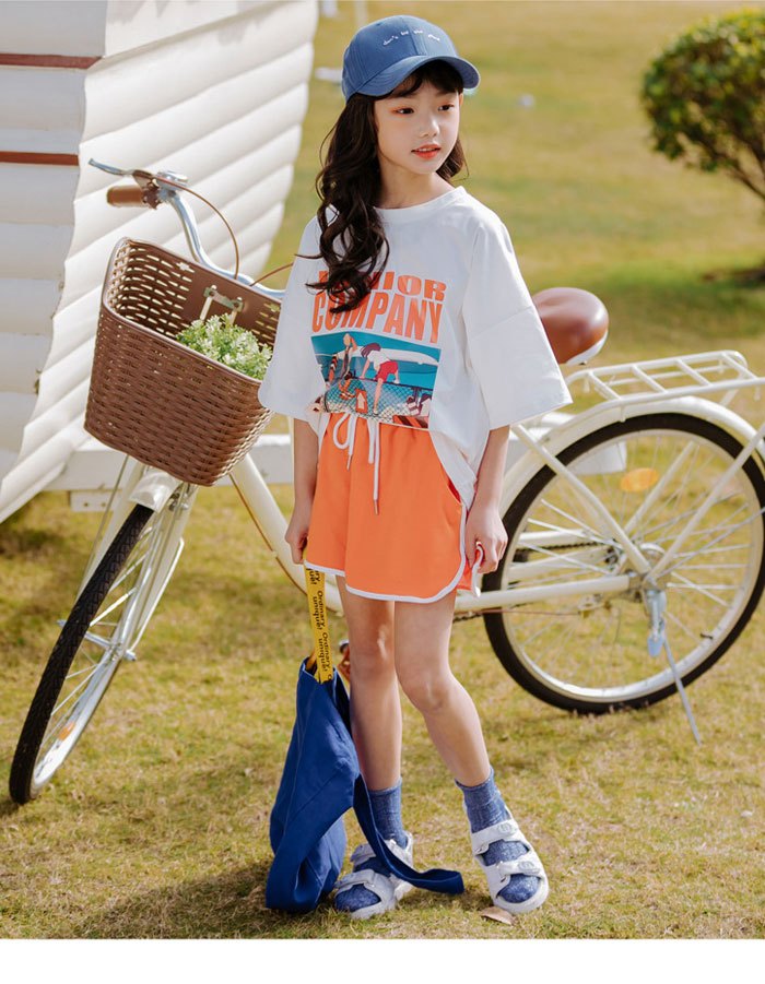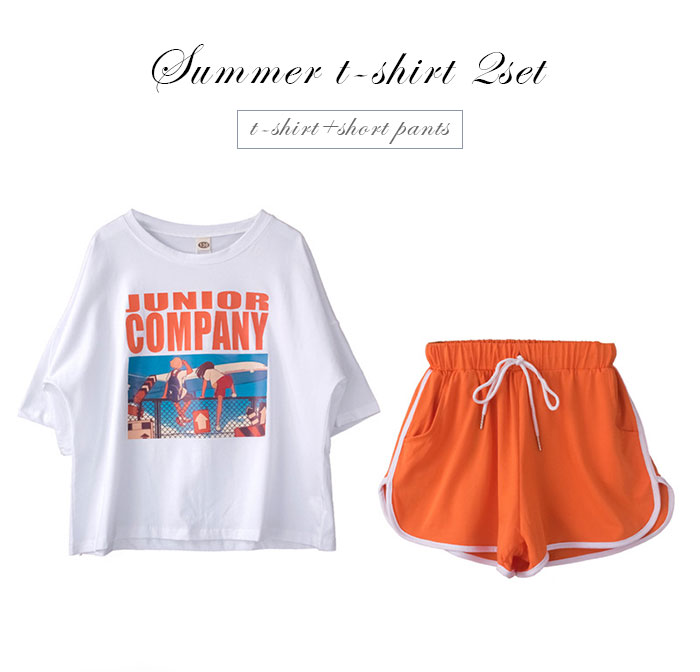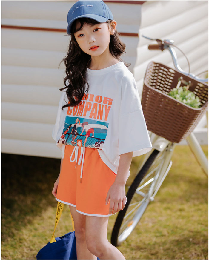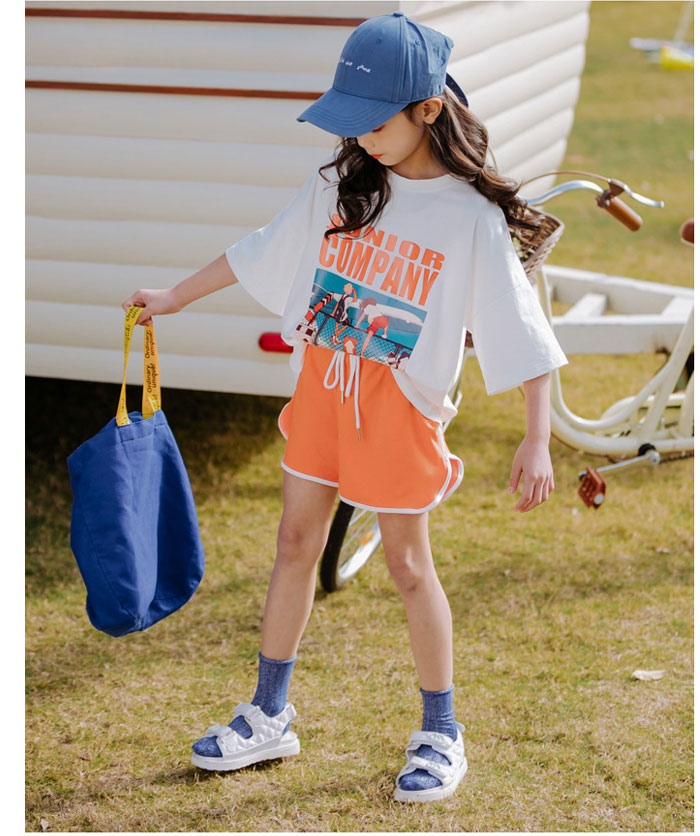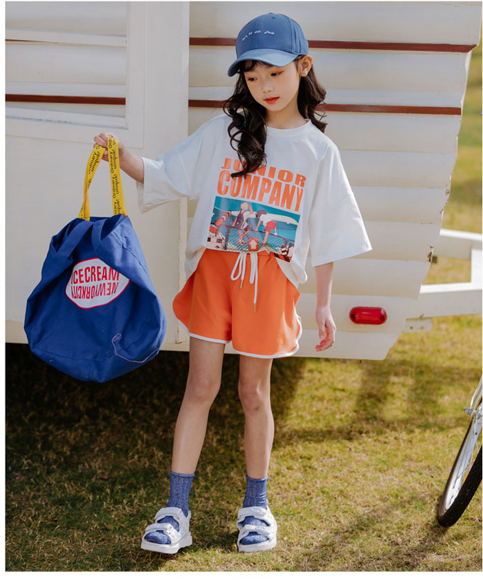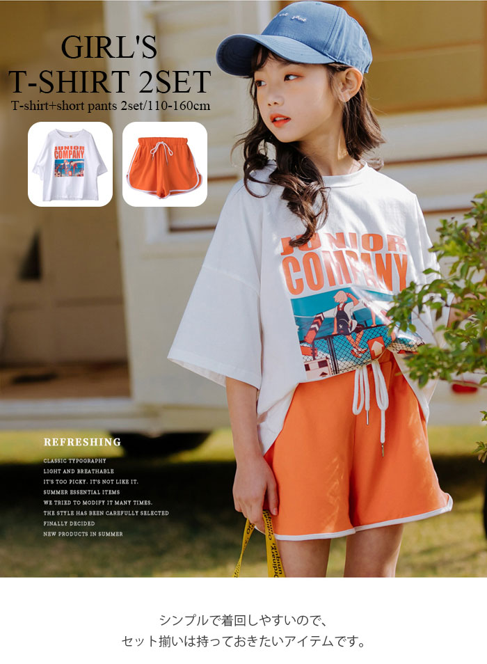 女の子 ファション 半袖 着心地いい パンツ コットン ゴムウエスト パンツ 2点セット 女の子 大人っぽい 夏 涼しい パーティー 出かけ 子供 セットアップ ウエストゴム プリント