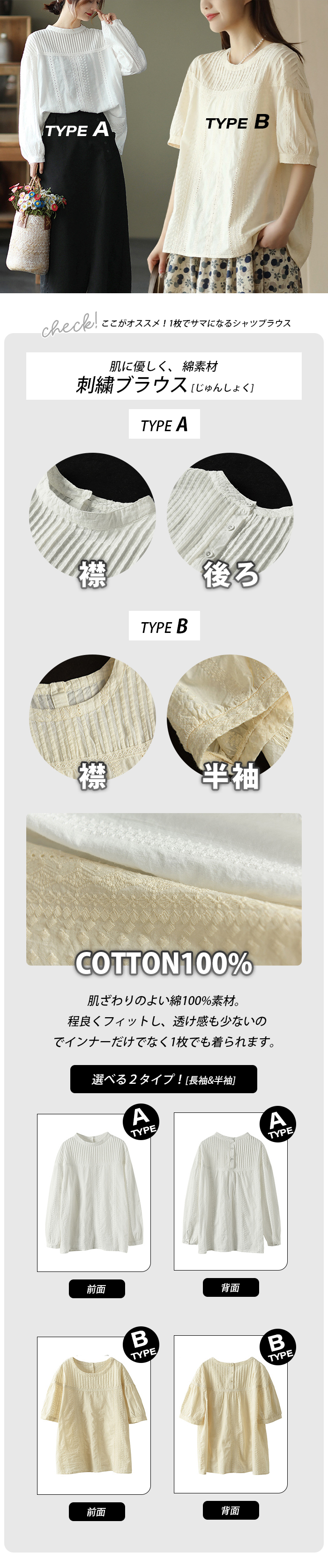 カラー: タイプA長袖ホワイト タイプA長袖ブラック タイプA長袖アプリコット タイプB半袖ホワイト タイプB半袖ブラック タイプB半袖ベージュ