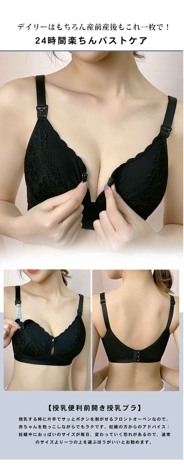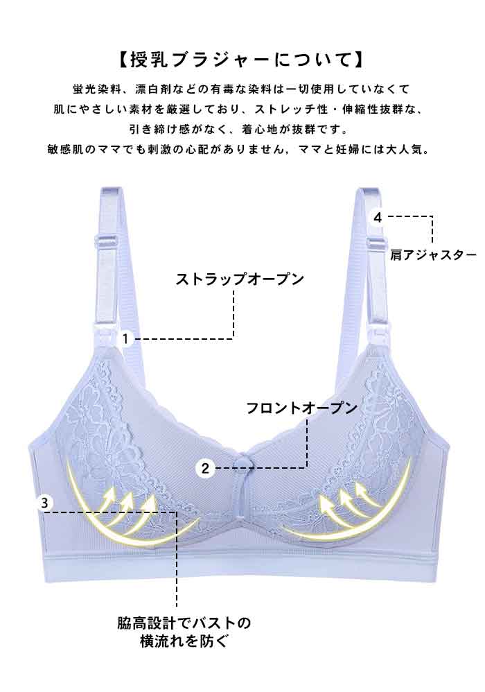 妊娠初期から産後まで一枚で 授乳に便利な前開きタイプ ノンワイヤーで優しく包み込む 育乳ブラジャー 育乳ブラ ナイトブラ ノンワイヤーブラジャー 片手でカップを開いて楽々授乳