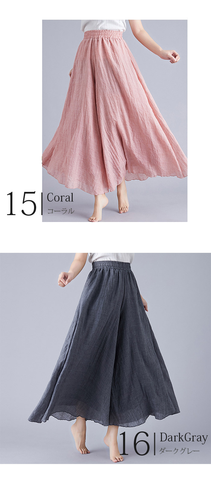 フレアスカート 綿麻混 マキシスカート