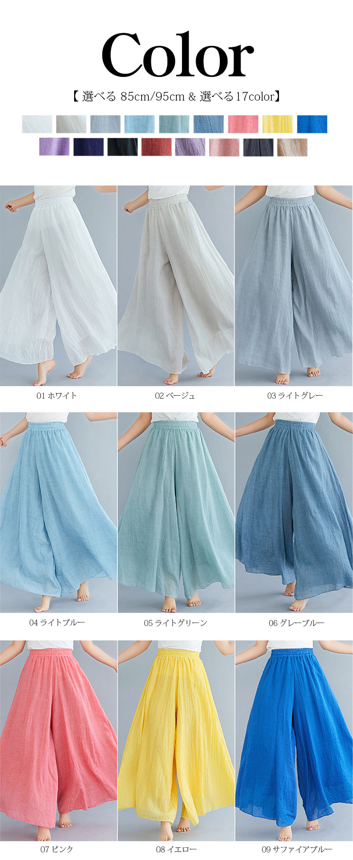 horizontal-key: 01ホワイト 02ベージュ 03ライトグレー 04ライトブルー 05ライトグリーン 06グレーブルー 07ピンク 08イエロー 09サファイアブルー 10グレーパープル 11ネイビー 12ブラック 13レッド 14バイオレット 15コーラル 16ダークグレー 17アプリコット
