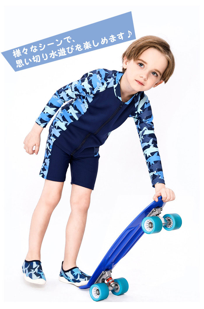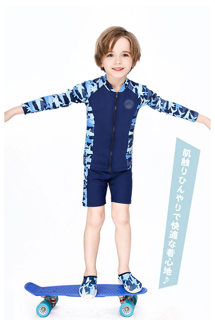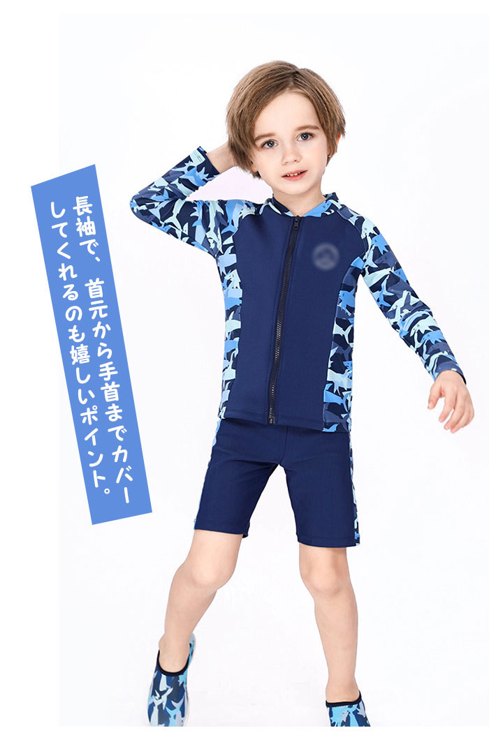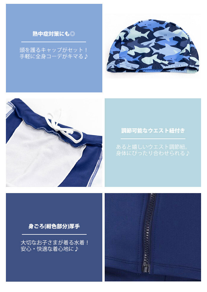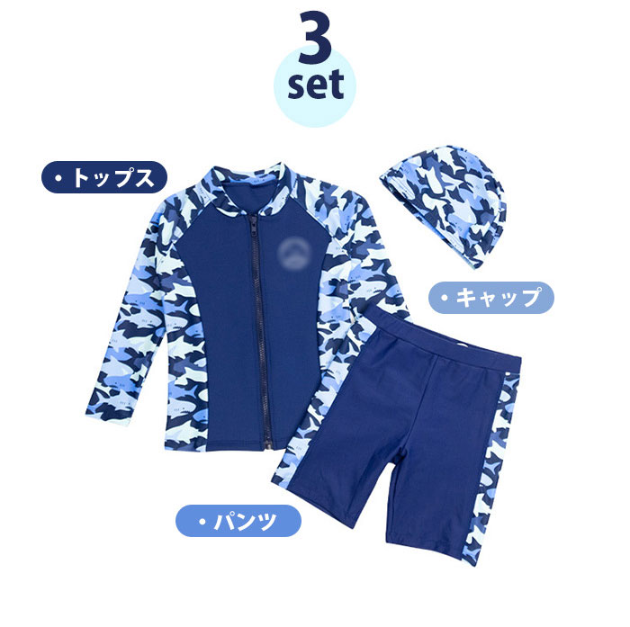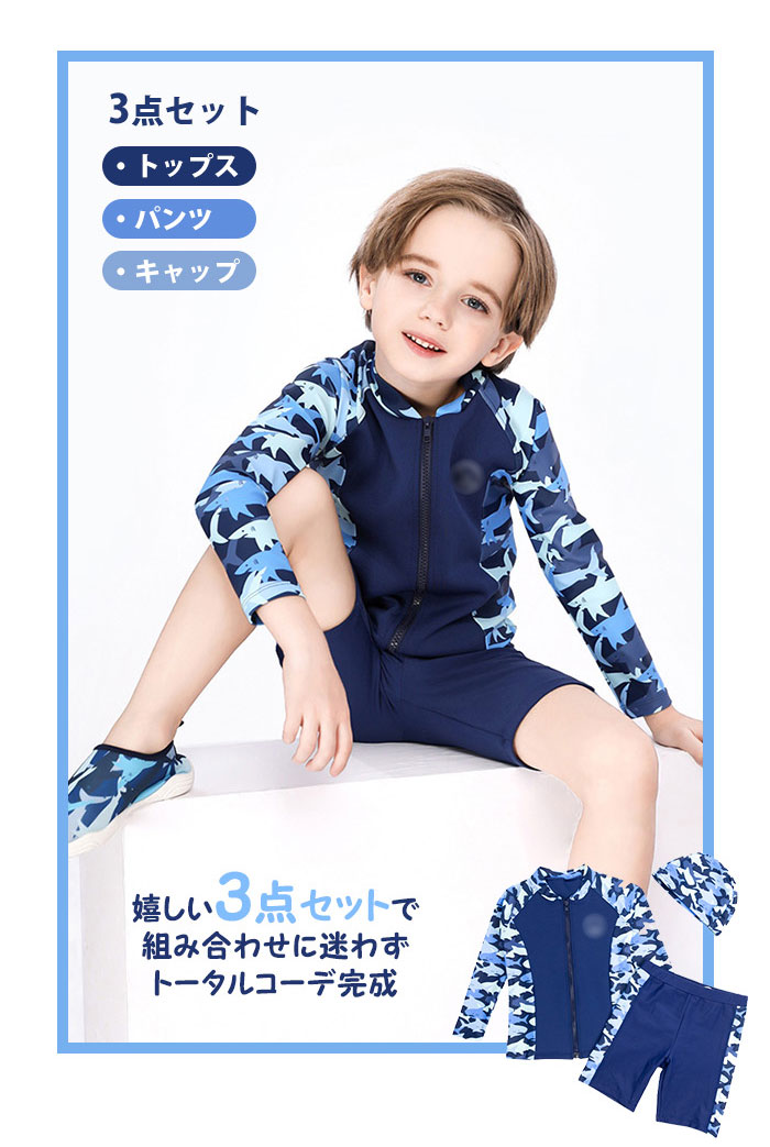 水着 子供 スイムキャップ キッズ 水着 男の子 ラッシュガード スイムウェア ラッシュガード 3点セット キュート パンツ サメ柄 男の子 子供服