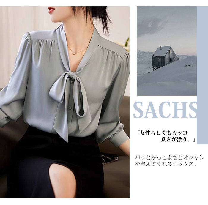 シアースリーブ ドッキングシャツ ボウタイシャツブラウス