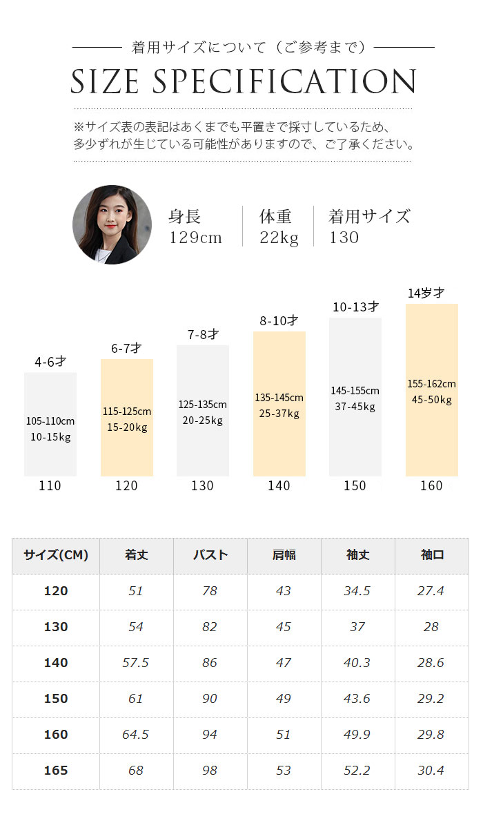 サイズ: 120cm 130cm 140cm 150cm 160cm 165cm