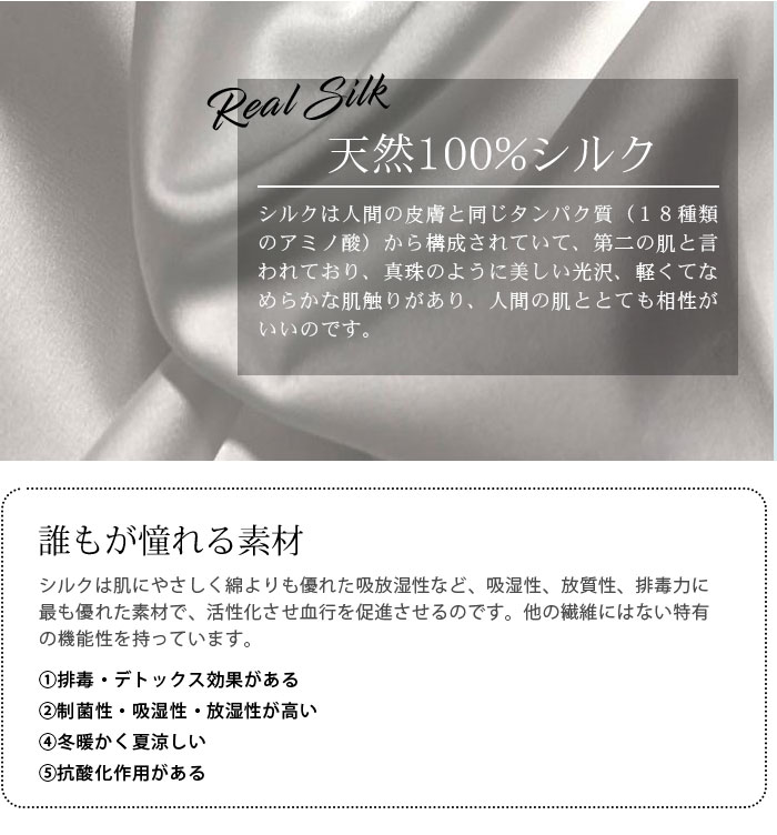 シルク100%の肌触りと快適な着心地で