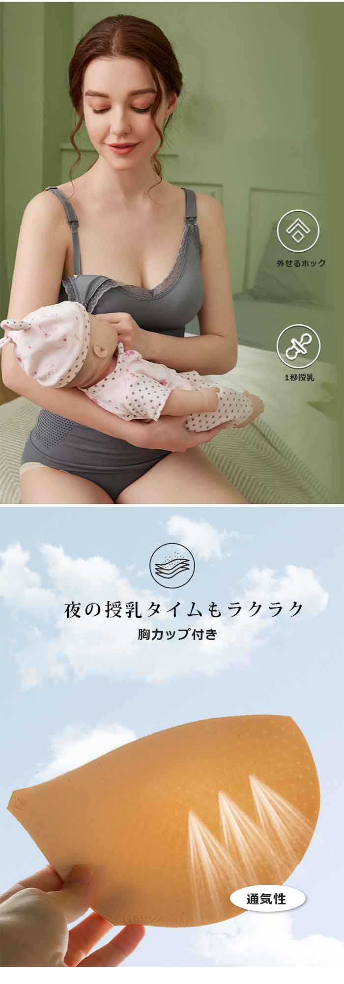 産前から産後まで一枚で 授乳に便利な前開きタイプ ノンワイヤーで優しく包み込む 育乳ブラジャー 哺乳ブラ ナイトブラ ノンワイヤーブラジャー 片手でカップを開いて楽々授乳