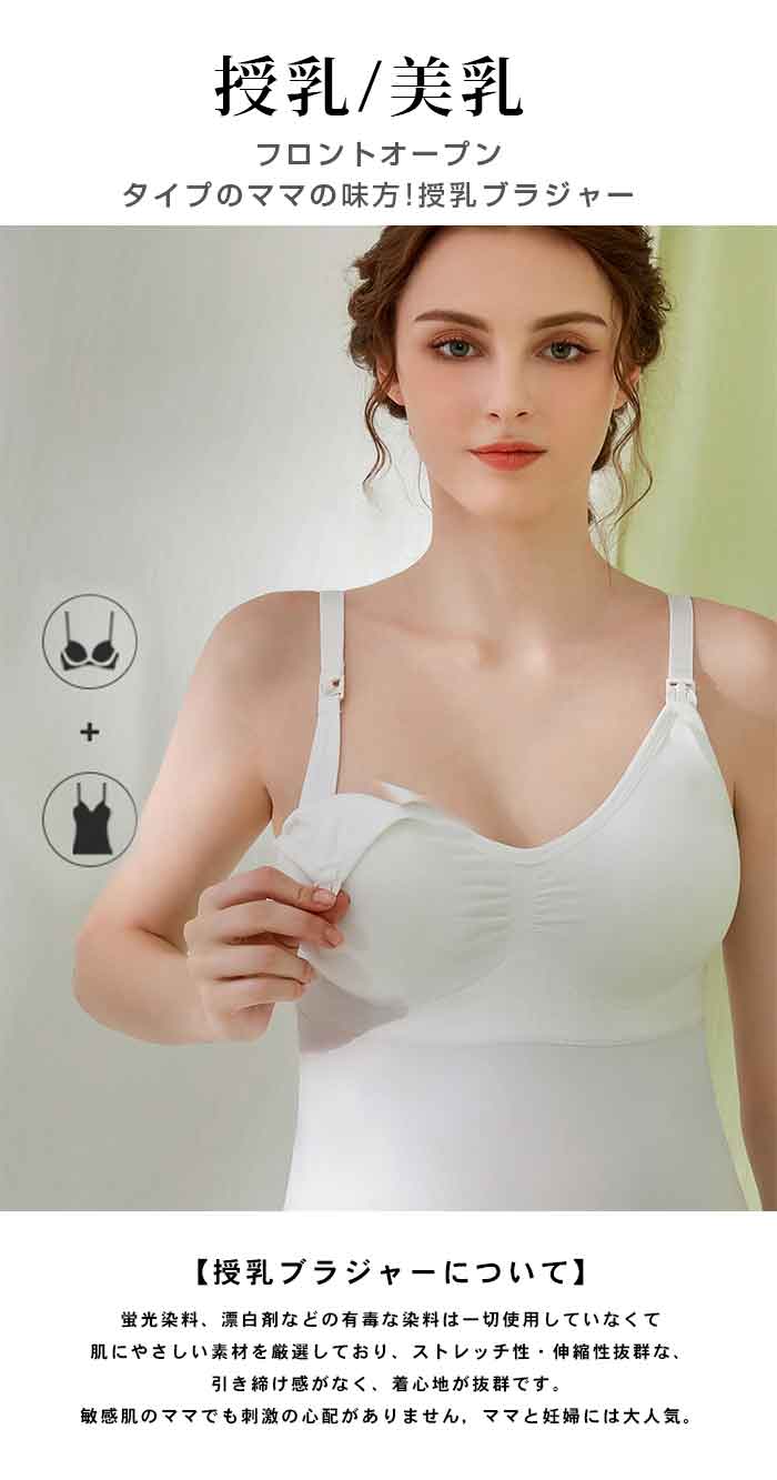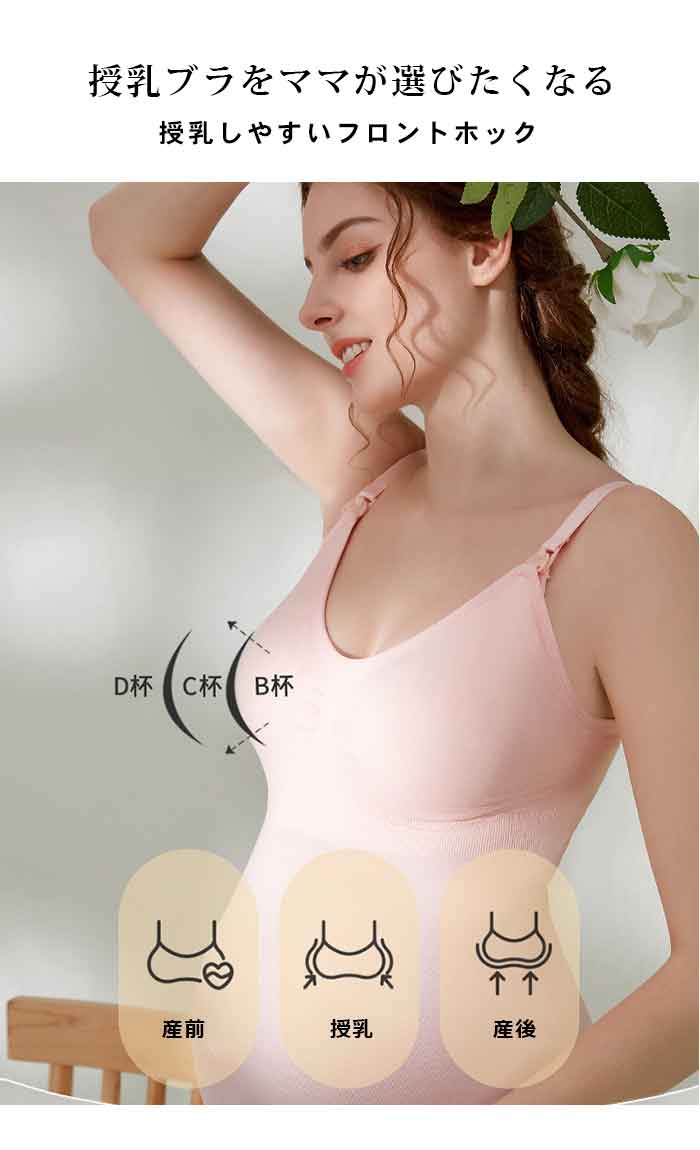 妊娠初期から産後まで一枚で 授乳に便利な前開きタイプ ノンワイヤーで優しく包み込む 育乳ブラジャー 育乳ブラ ナイトブラ ノンワイヤーブラジャー 片手でカップを開いて楽々授乳