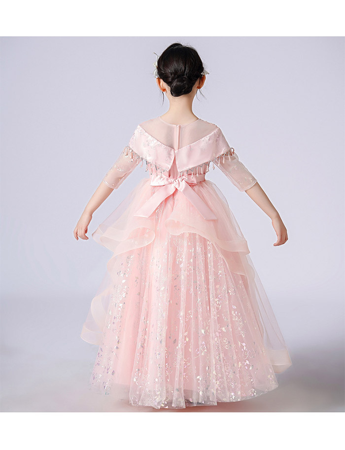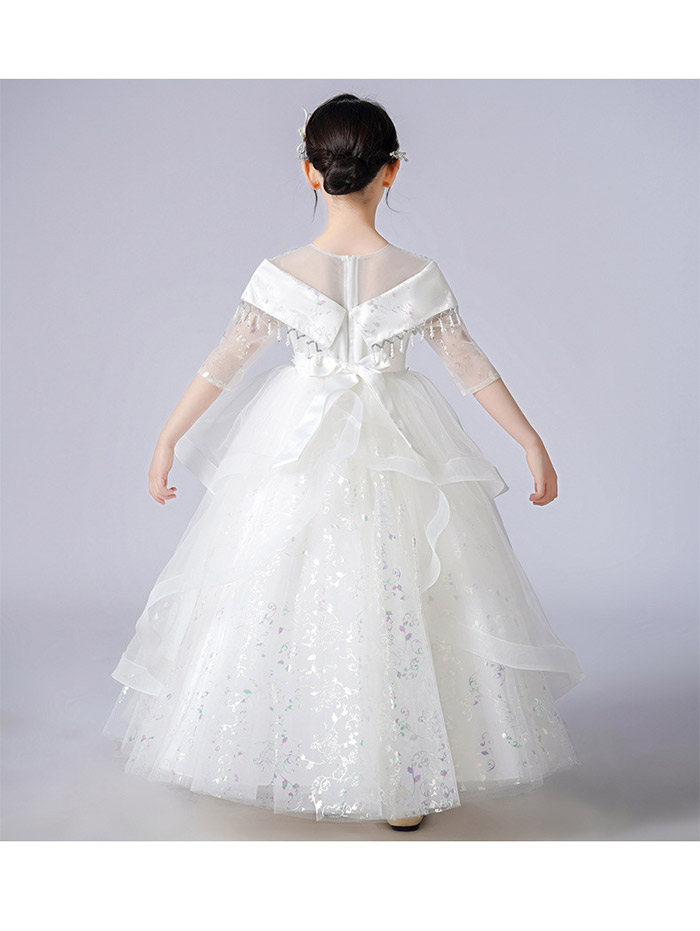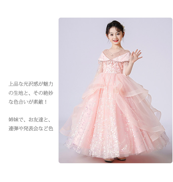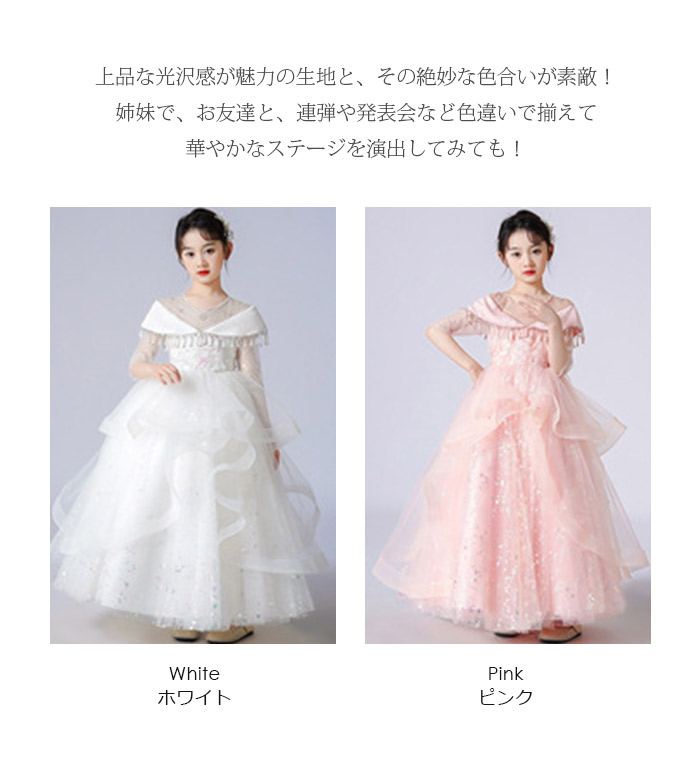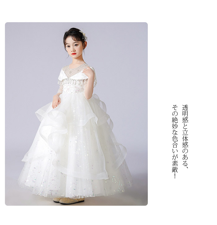 コンクール ドレス こどもドレス 立体的な細かな刺繍が袖まで施されていてとても上品な印象 フォーマルドレス お返し 人気
