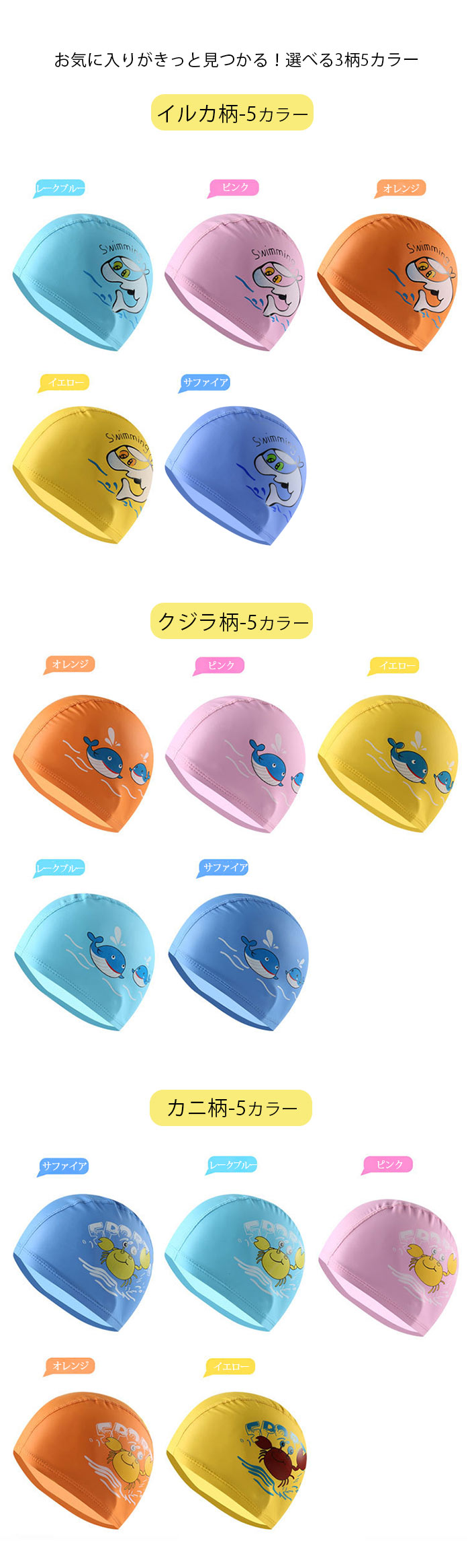 水の抵抗を受けにくく、プールの水の塩素で髪の毛が傷みづらい素材 超可愛い スイムキャップ 女の子用の水泳帽 プール用品 海水浴 ピンク イエロー ブルー
