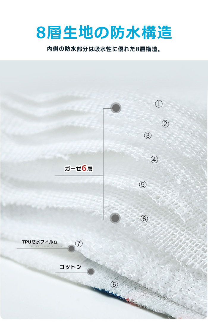 優しい肌さわりのコットン素材と防止素材